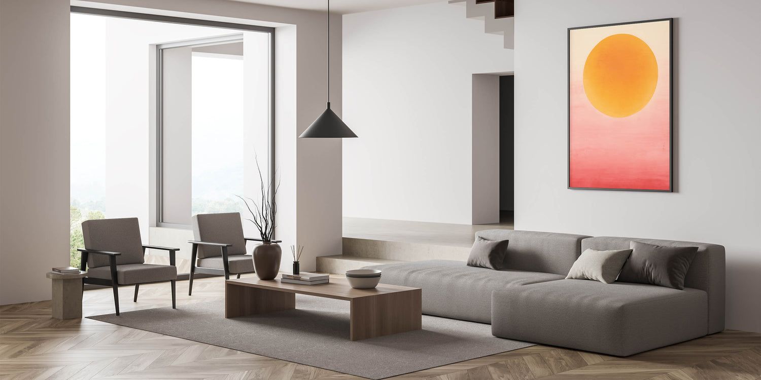 Ideal for living rooms, bedrooms, or creative spaces, this abstract art piece brings a touch of warmth and positivity. Enhance your decor with this sunset-inspired design that radiates modern charm.