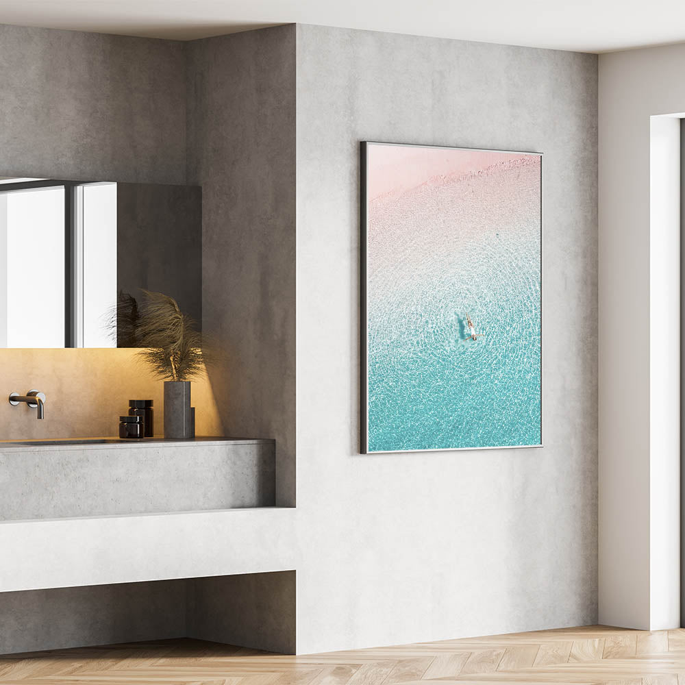 This stunning artwork blends vibrant water textures and soft pastel hues, creating a peaceful escape for your home. Its tropical charm makes it perfect for those who love relaxing summer decor and tranquil coastal-inspired art. Whether used as a centerpiece or part of a gallery wall, this canvas brings a splash of calm and luxury to any room.