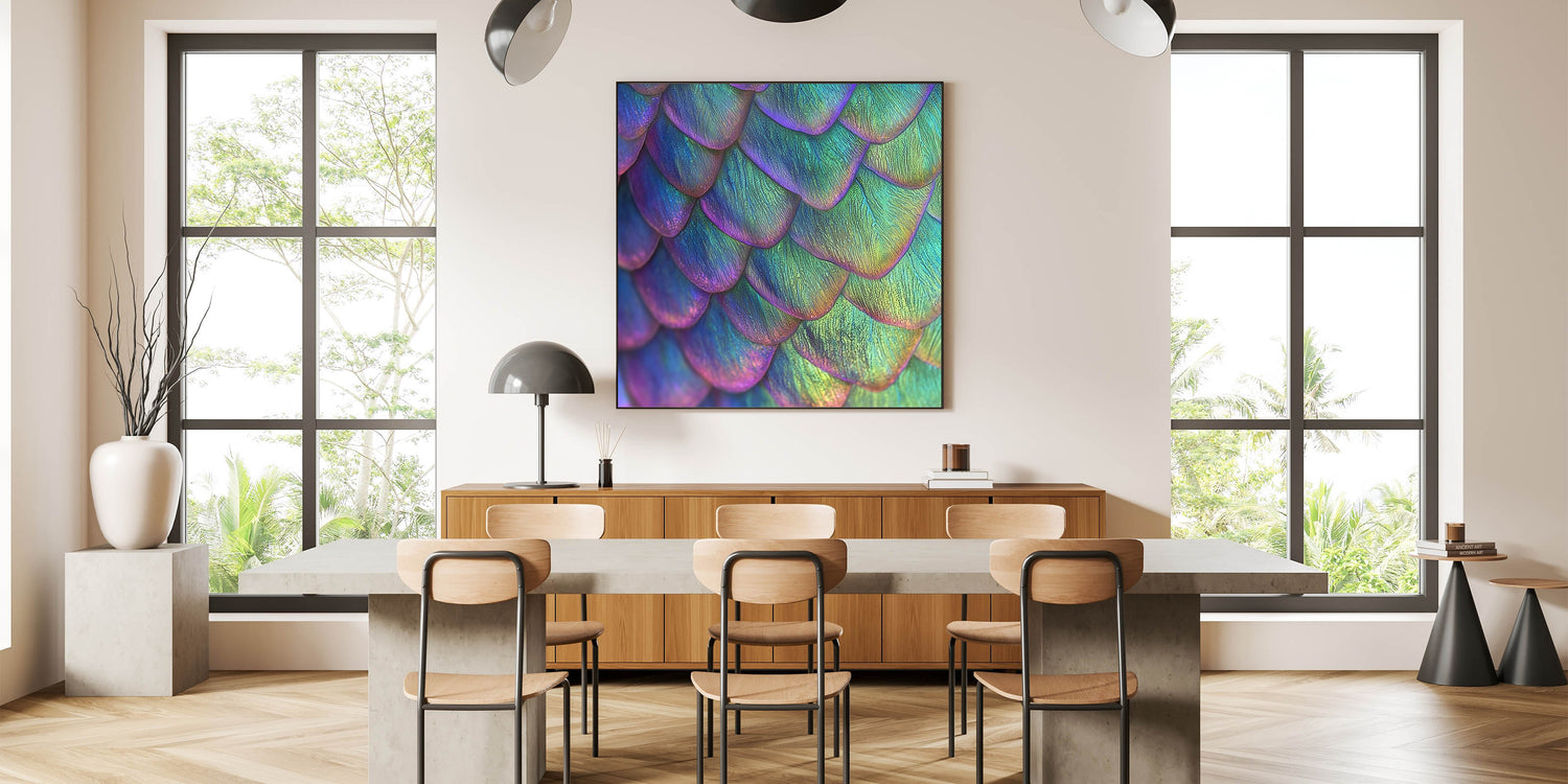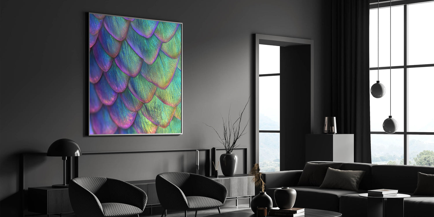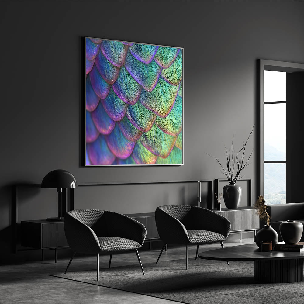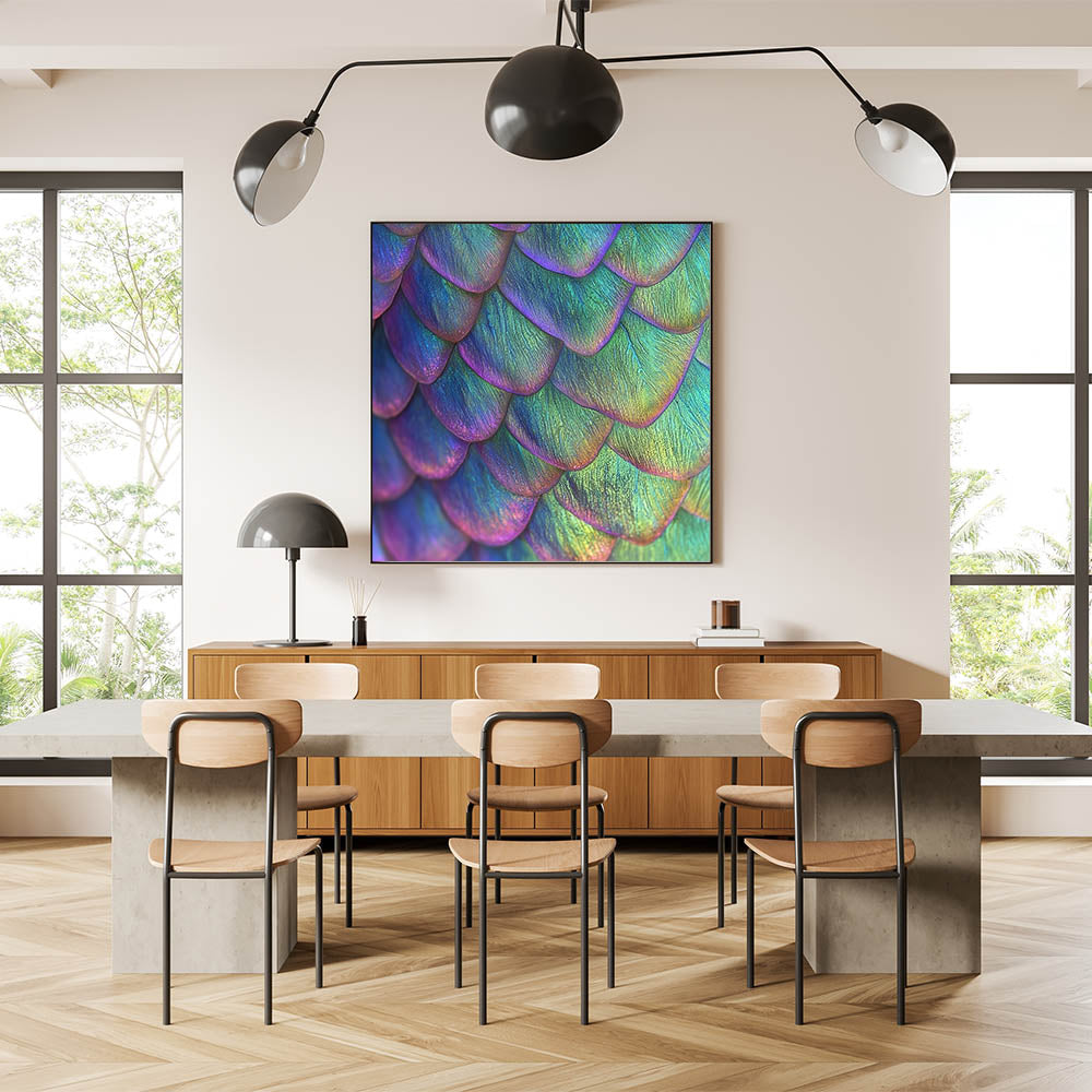 Add a splash of vibrant color and texture to your decor with this stunning close-up of fish scales. Part of the Nature Close Up Art collection, this Wildlife Photography Print beautifully showcases the intricate patterns and radiant hues of nature, making it a unique addition to any space.