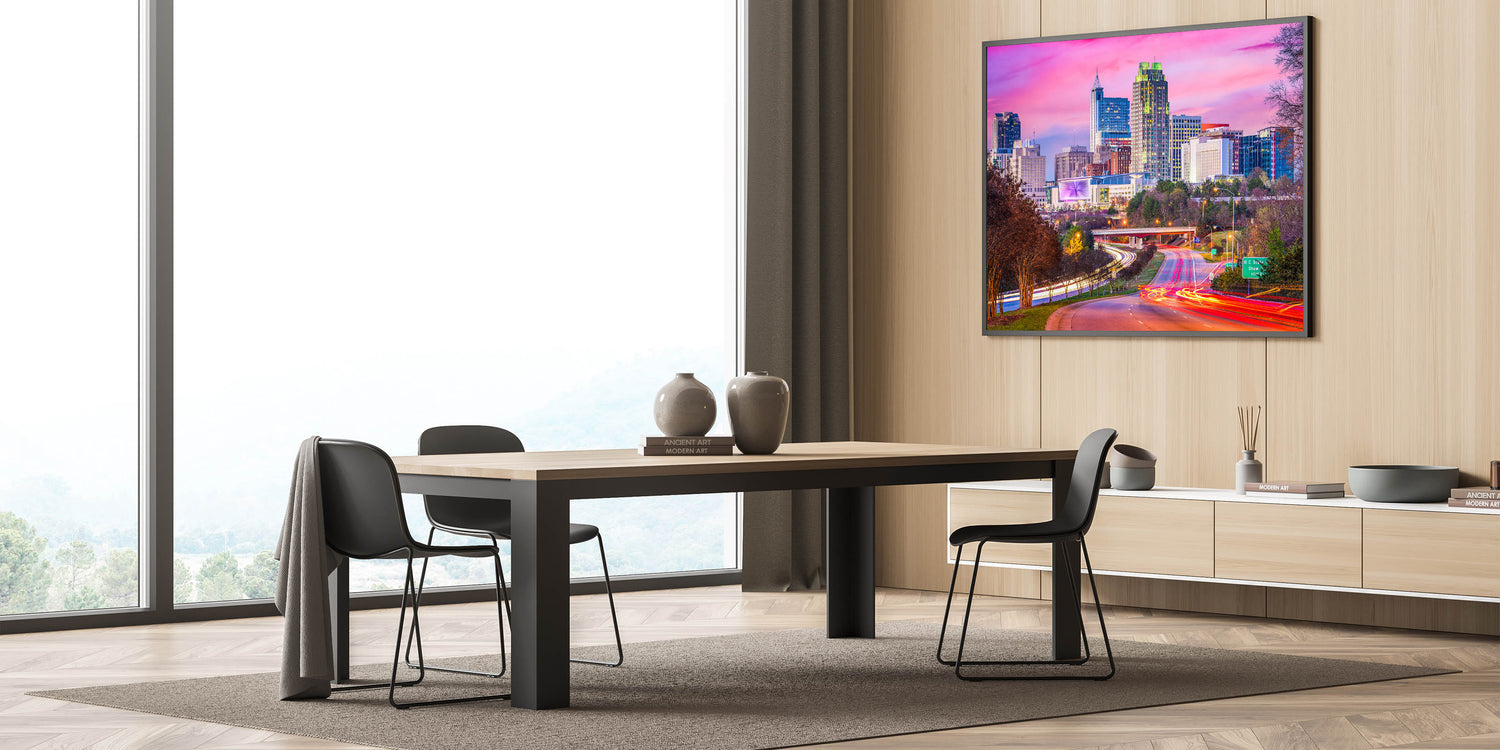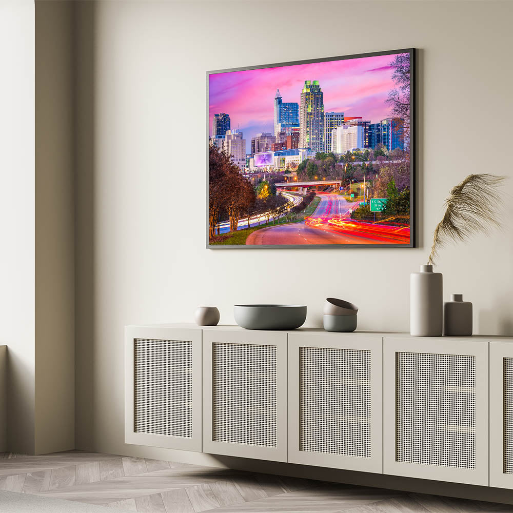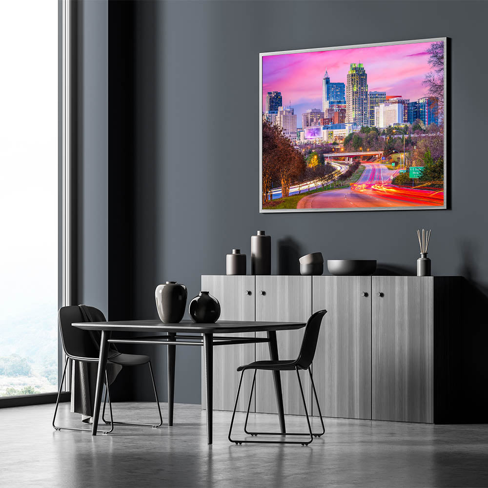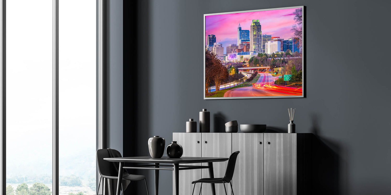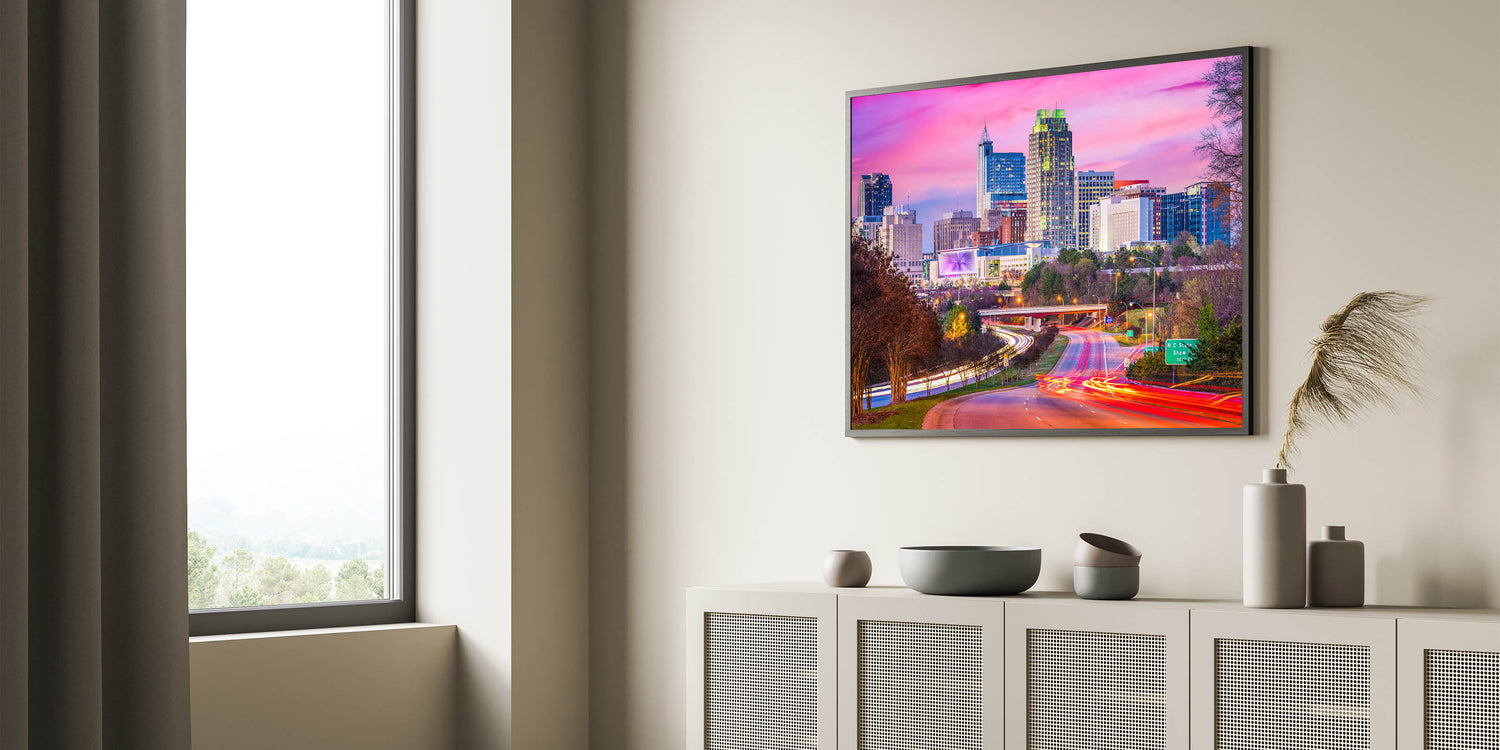 • Stunning scenic North Carolina prints that highlight the city’s vibrant skyline.