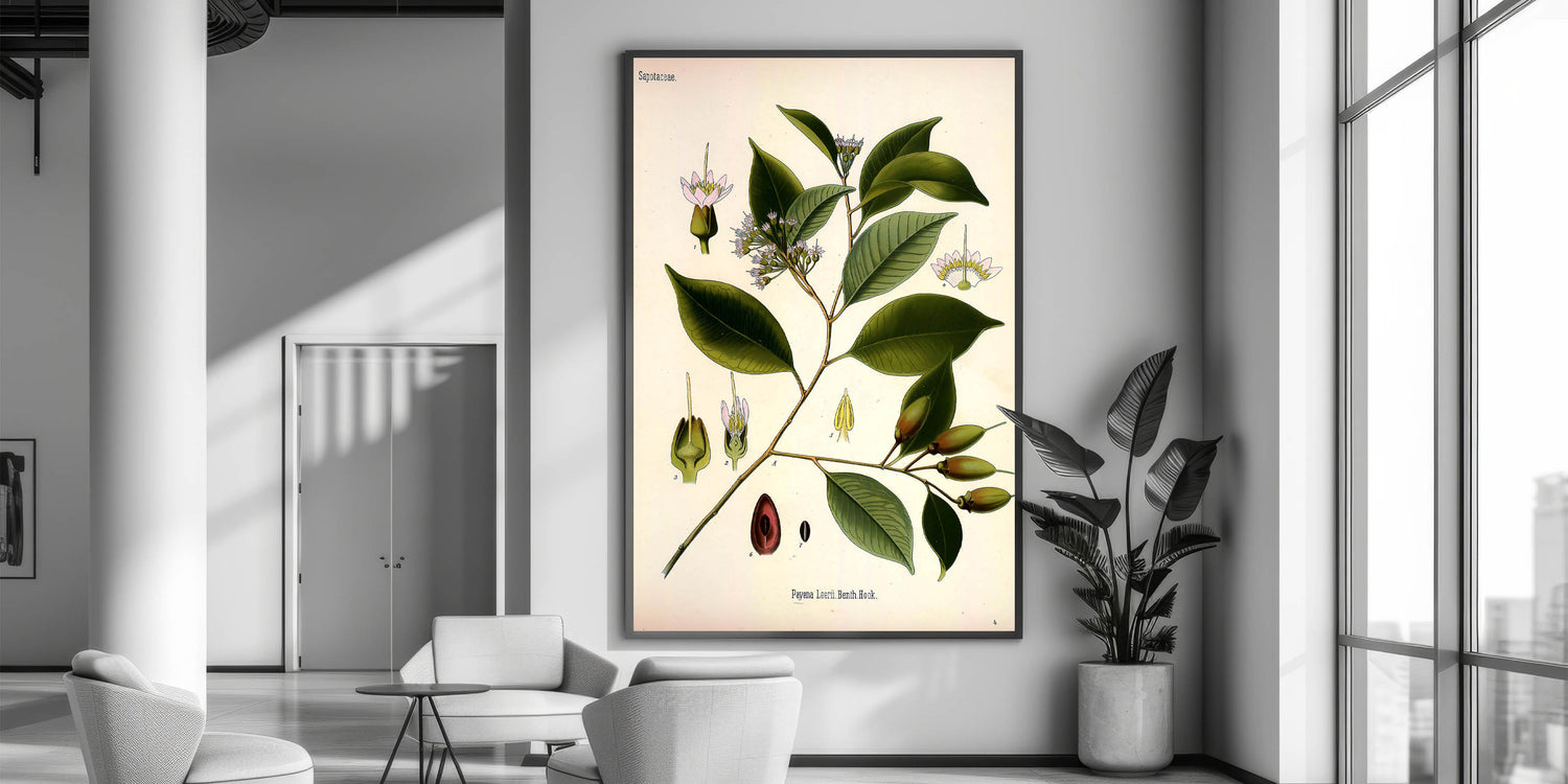 This botanical art print celebrates the beauty of Payena Leeri, making it a timeless addition to your home or office.
