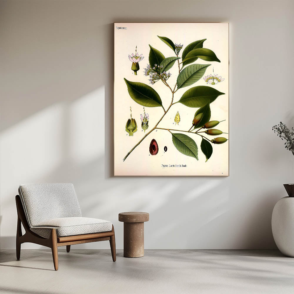 Enhance your home with this stunning botanical art print of Payena Leeri. Known for its striking green leaves and delicate pink-tipped flowers, this vintage botanical illustration adds an elegant touch of nature to any space. Perfect for nature lovers, botanical art collectors, or anyone looking to bring the beauty of tropical plants into their decor.