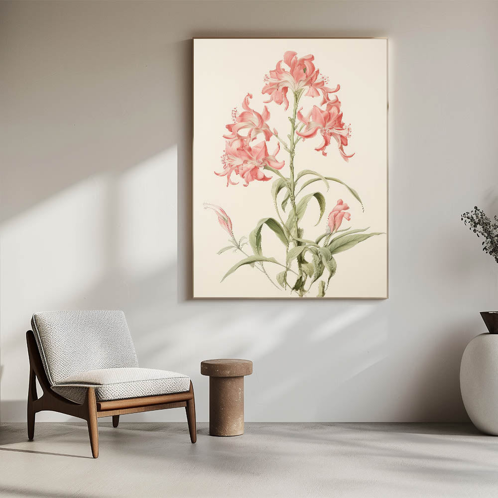 Bring timeless elegance into your space with this vintage botanical art print featuring a delicate pink flower illustration. The soft pink petals, paired with the subtle green leaves, create a serene and refined atmosphere, making this artwork perfect for vintage, nature-inspired, or minimalist décor.