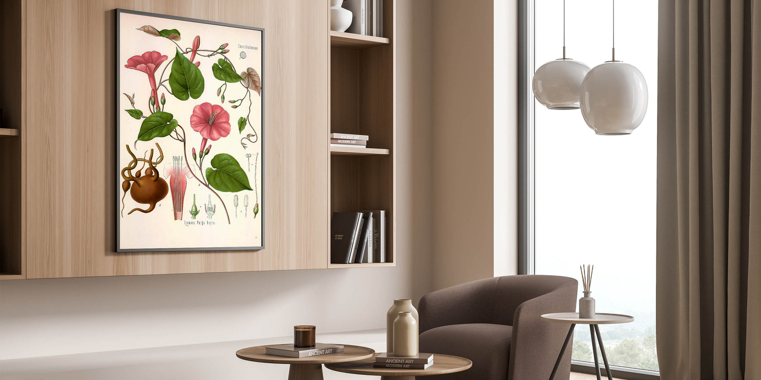 This popular botanical art piece adds a fresh and lively vibe to your home. Its vintage charm and colorful illustrations make it a versatile choice for both modern and classic settings. Transform your walls with this stunning botanical print today!