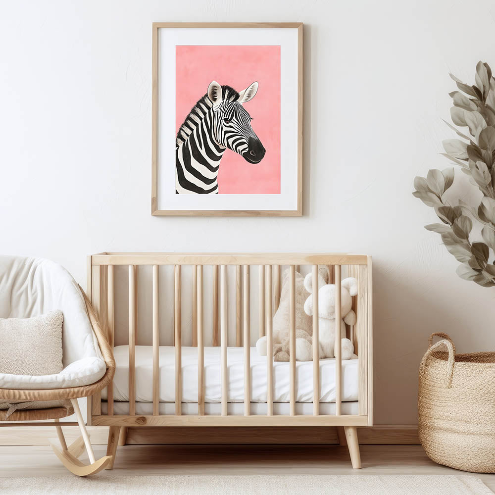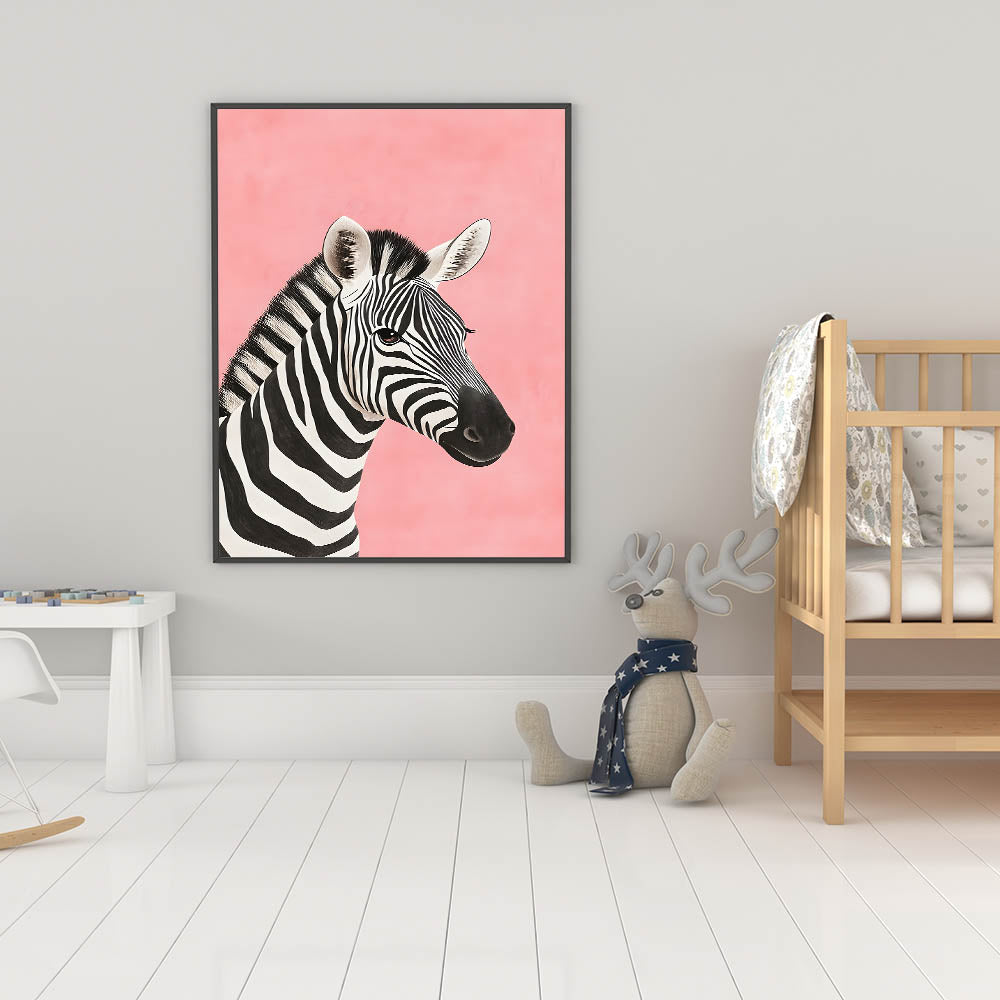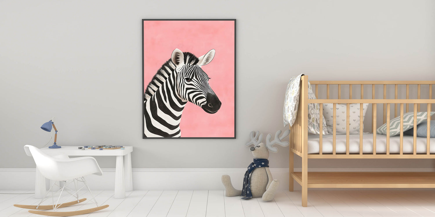 Make a bold yet playful statement in your child's space with this Zebra Nursery Wall Art. Featuring a beautifully illustrated black and white zebra against a soft pink background, this baby room decor creates a striking yet gentle aesthetic perfect for nurseries, playrooms, or children's bedrooms.