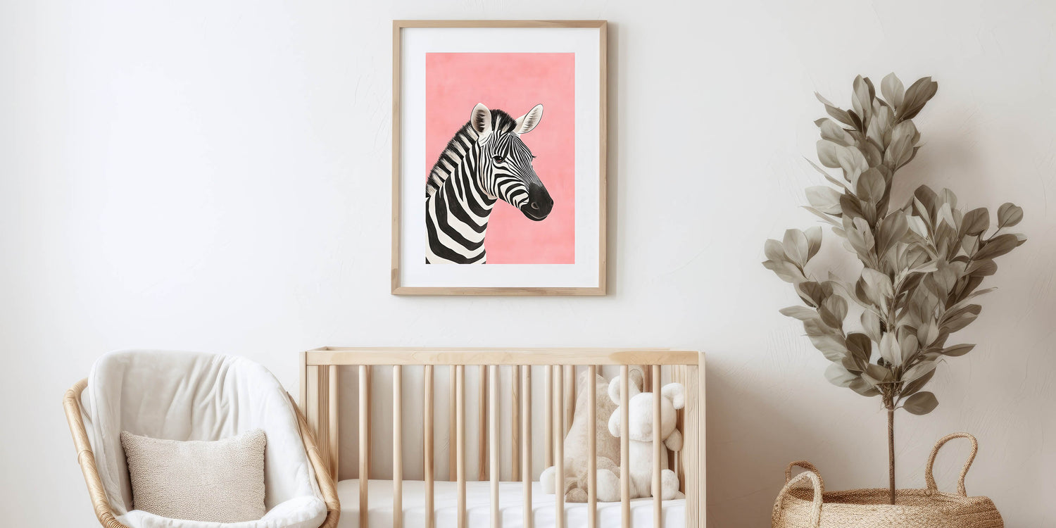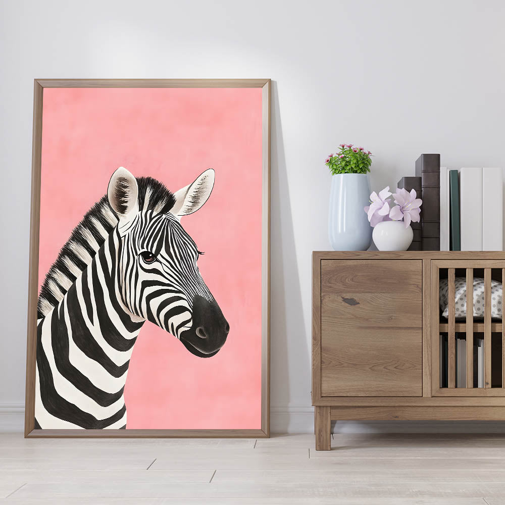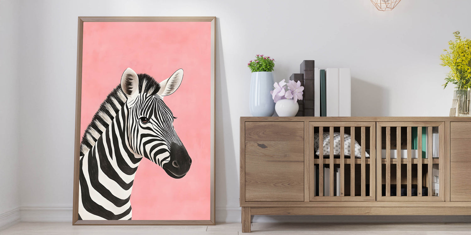 Make a bold yet playful statement in your child's space with this Zebra Nursery Wall Art. Featuring a beautifully illustrated black and white zebra against a soft pink background, this baby room decor creates a striking yet gentle aesthetic perfect for nurseries, playrooms, or children's bedrooms.