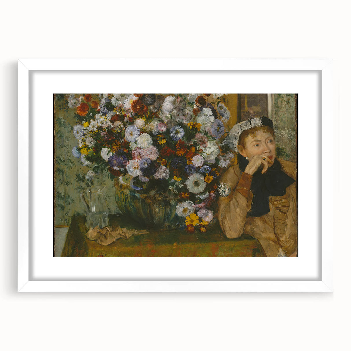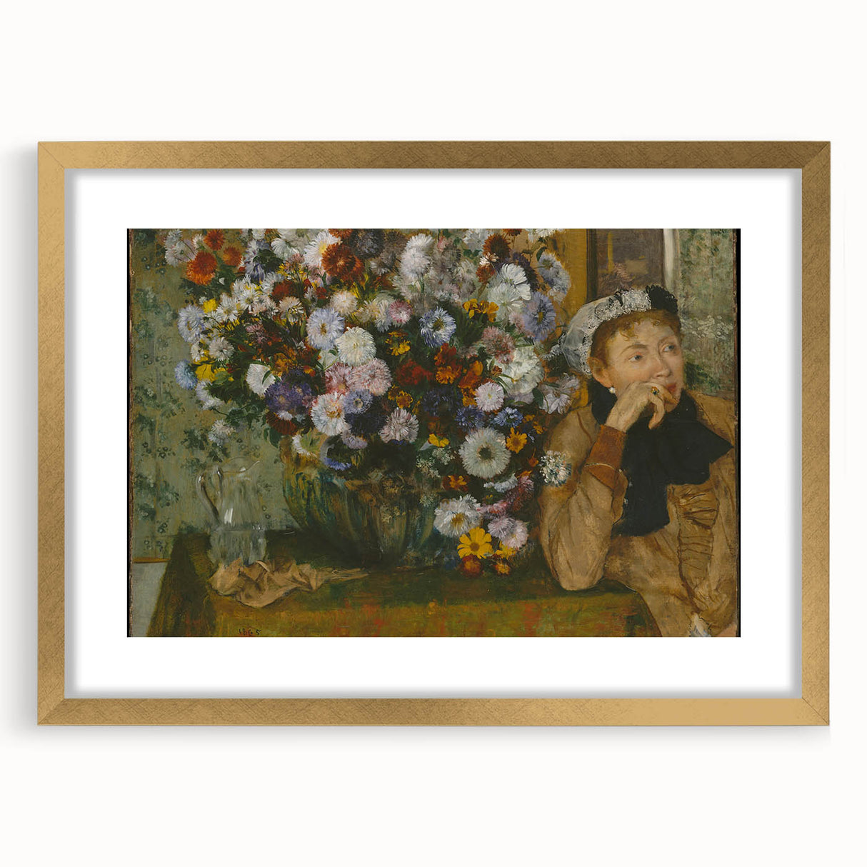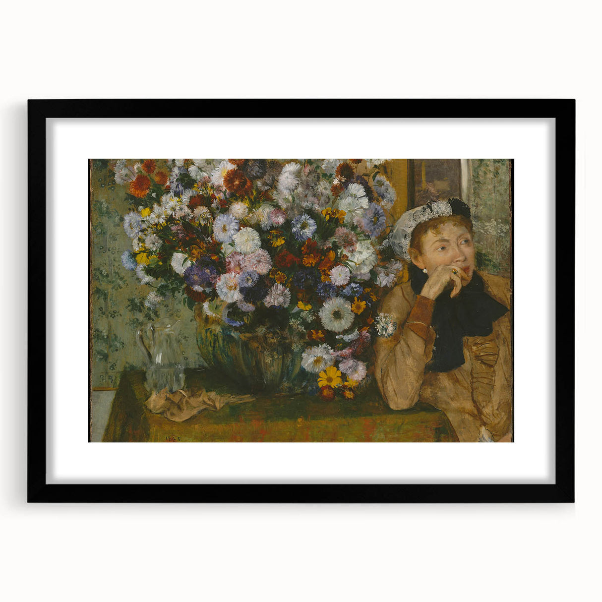 - High-quality reproduction of Edgar Degas’ "A Woman Seated Beside a Vase of Flowers"