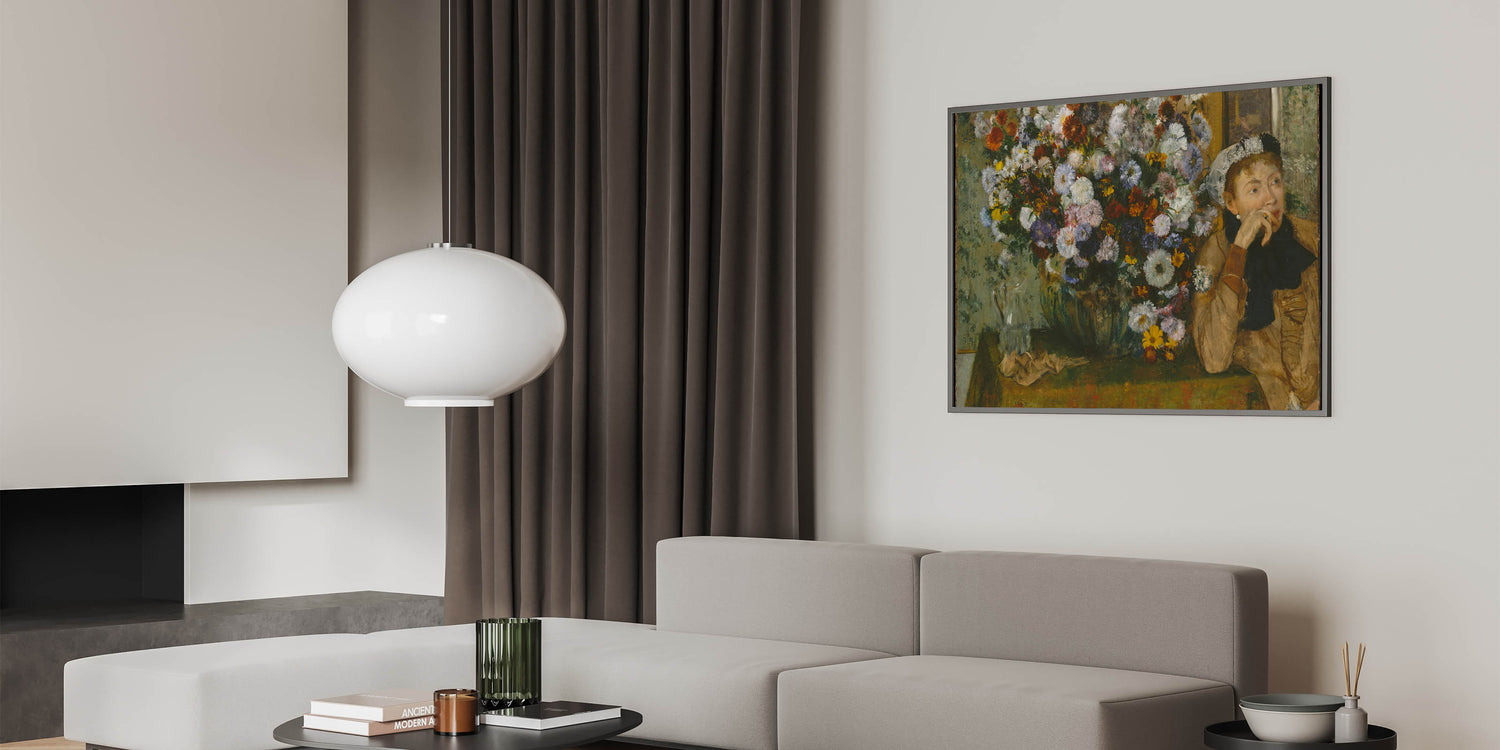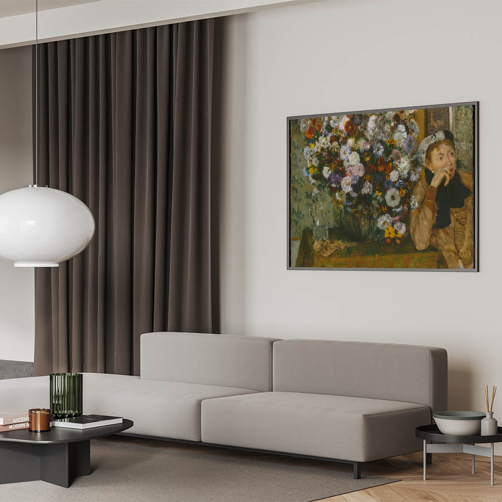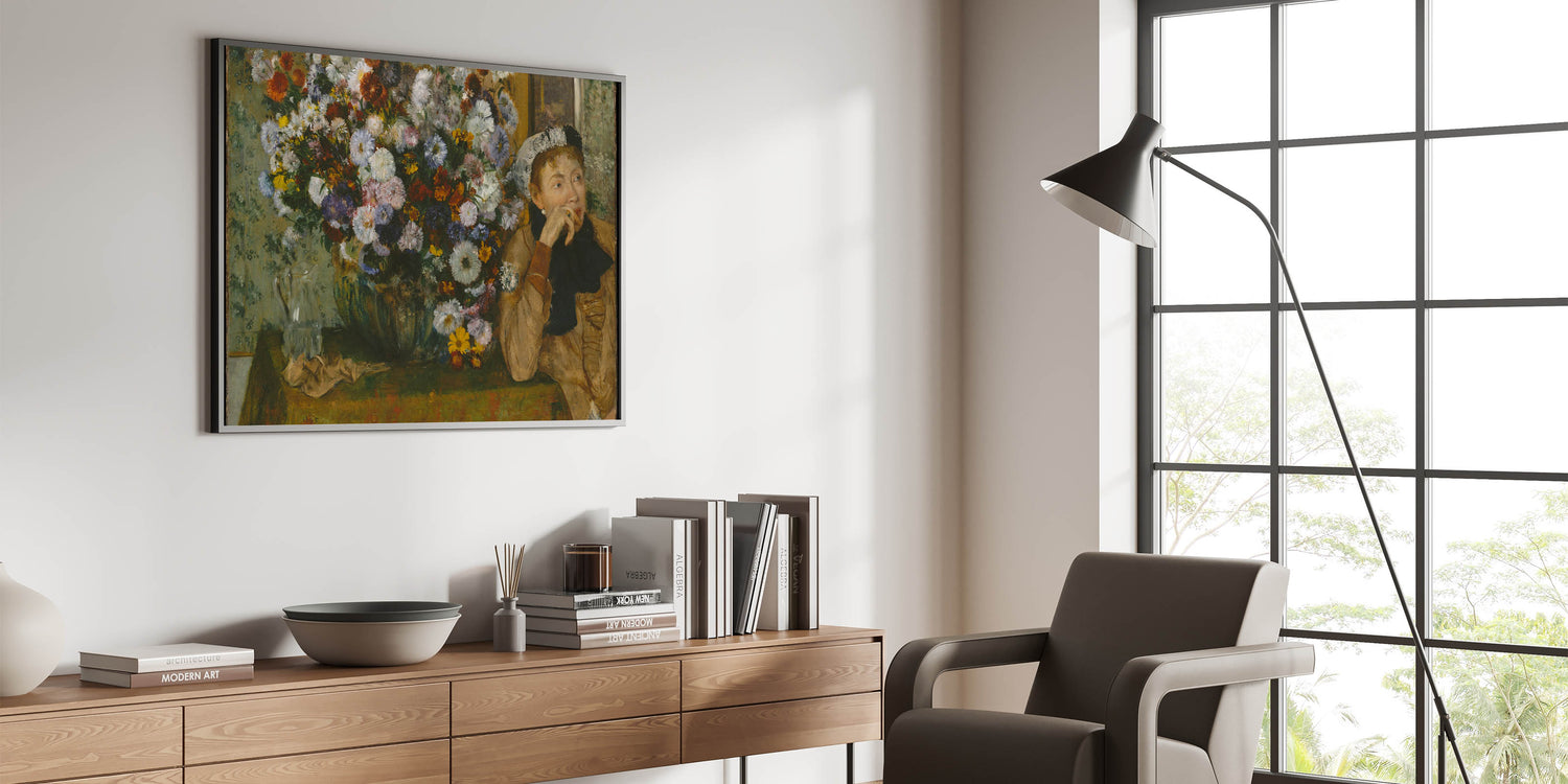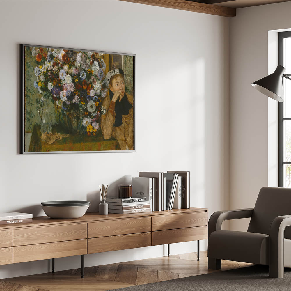 - High-quality reproduction of Edgar Degas’ "A Woman Seated Beside a Vase of Flowers"