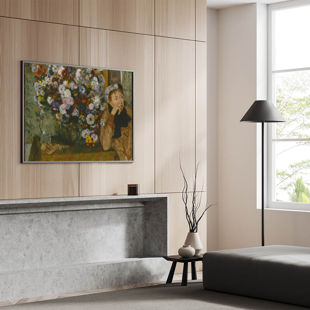 A Woman Seated Beside a Vase of Flowers by Degas: Classic Wall Art Print