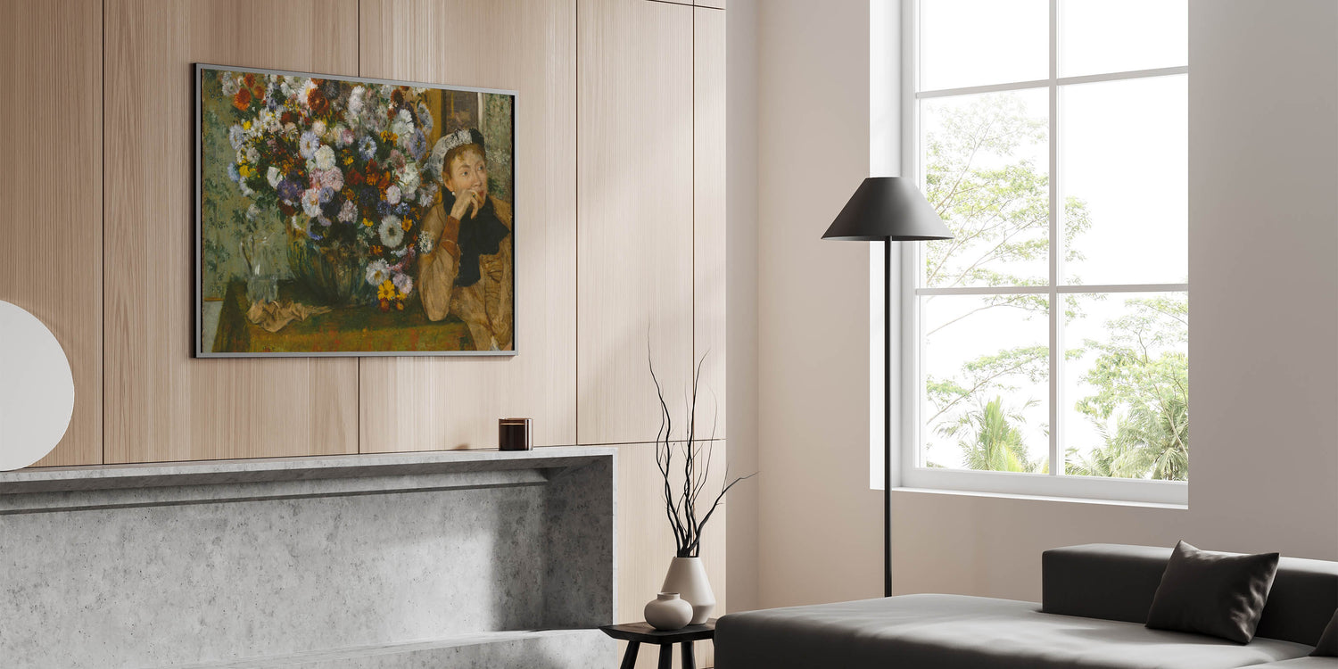 Bring the grace and beauty of Edgar Degas’ "A Woman Seated Beside a Vase of Flowers" into your space. This impressionist masterpiece captures a quiet moment, as a thoughtful woman sits beside an abundant bouquet of flowers in full bloom. The lush, colorful arrangement contrasts with her contemplative pose, creating a striking visual that celebrates both the vibrancy of nature and the intimacy of human emotion. Perfect for those who appreciate the elegance of Degas’ work, this piece adds warmth and sophistication to any room.