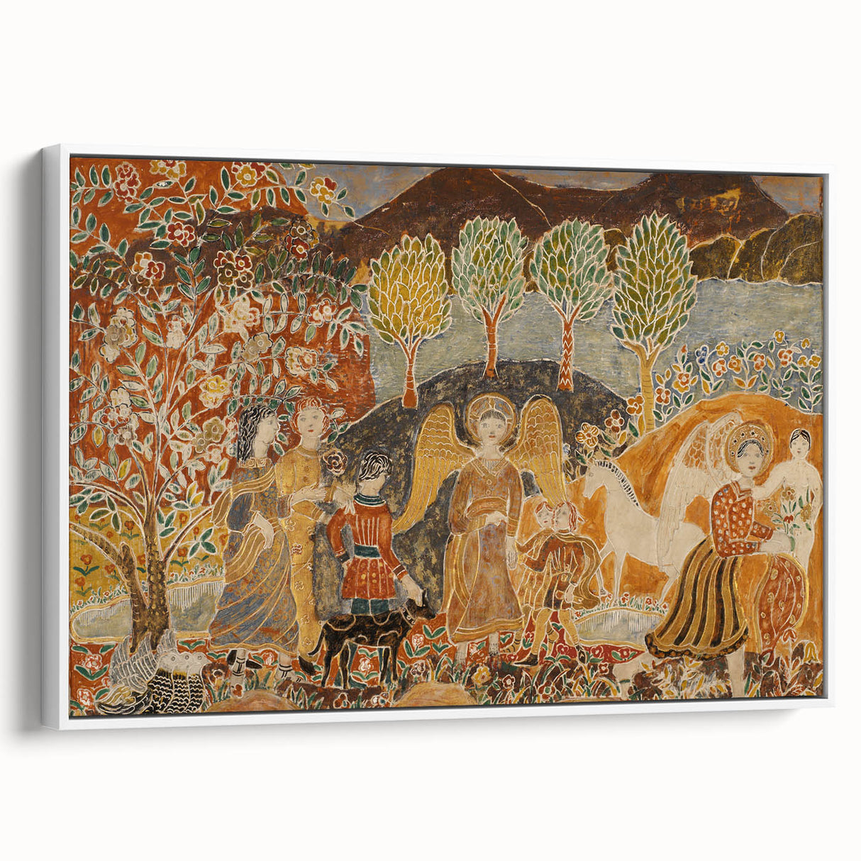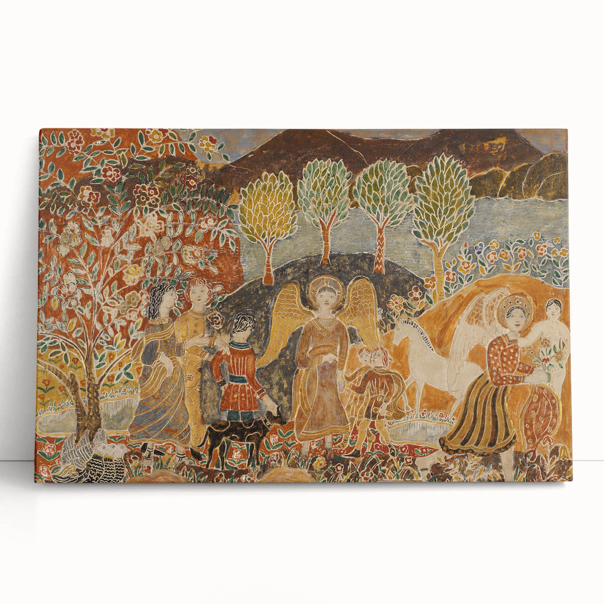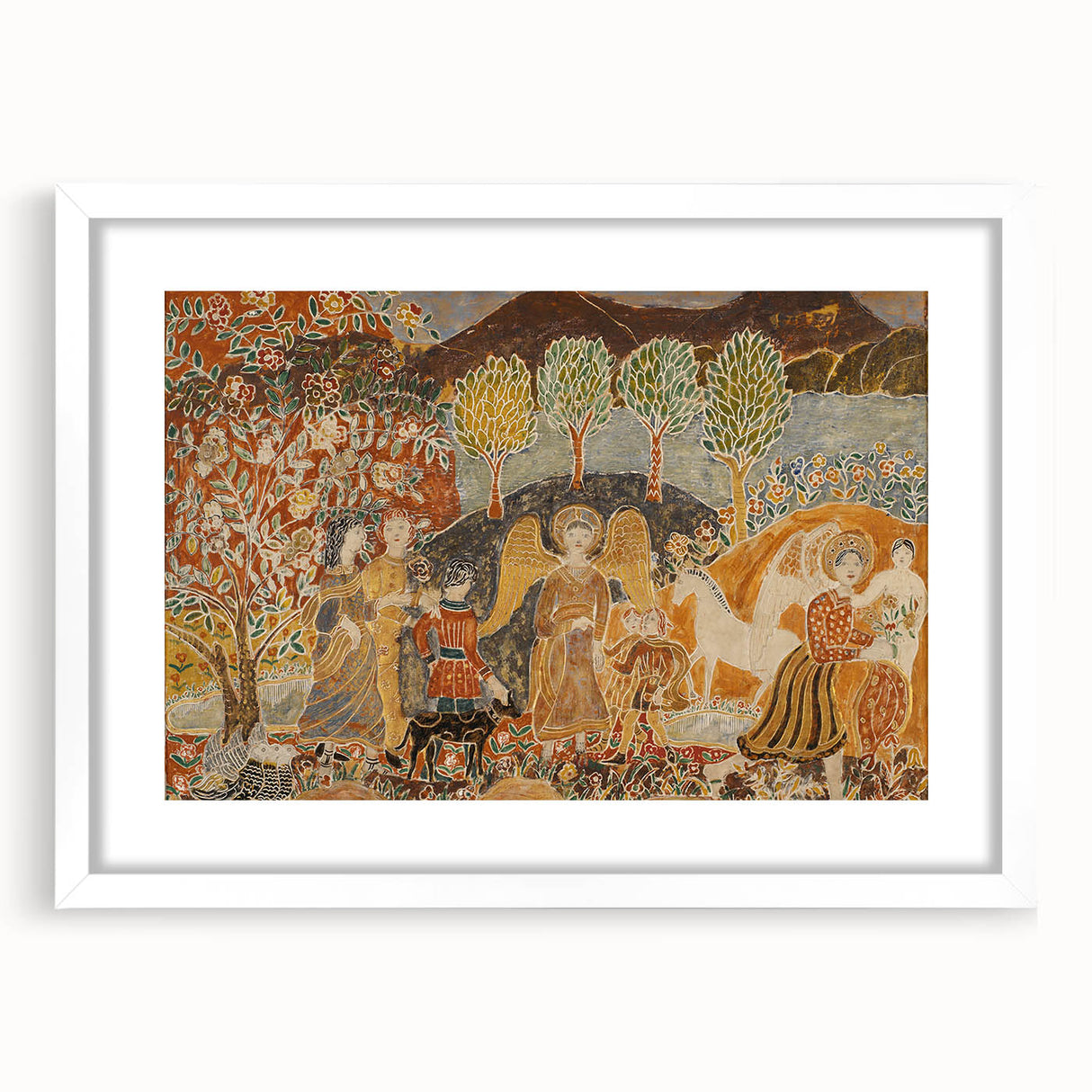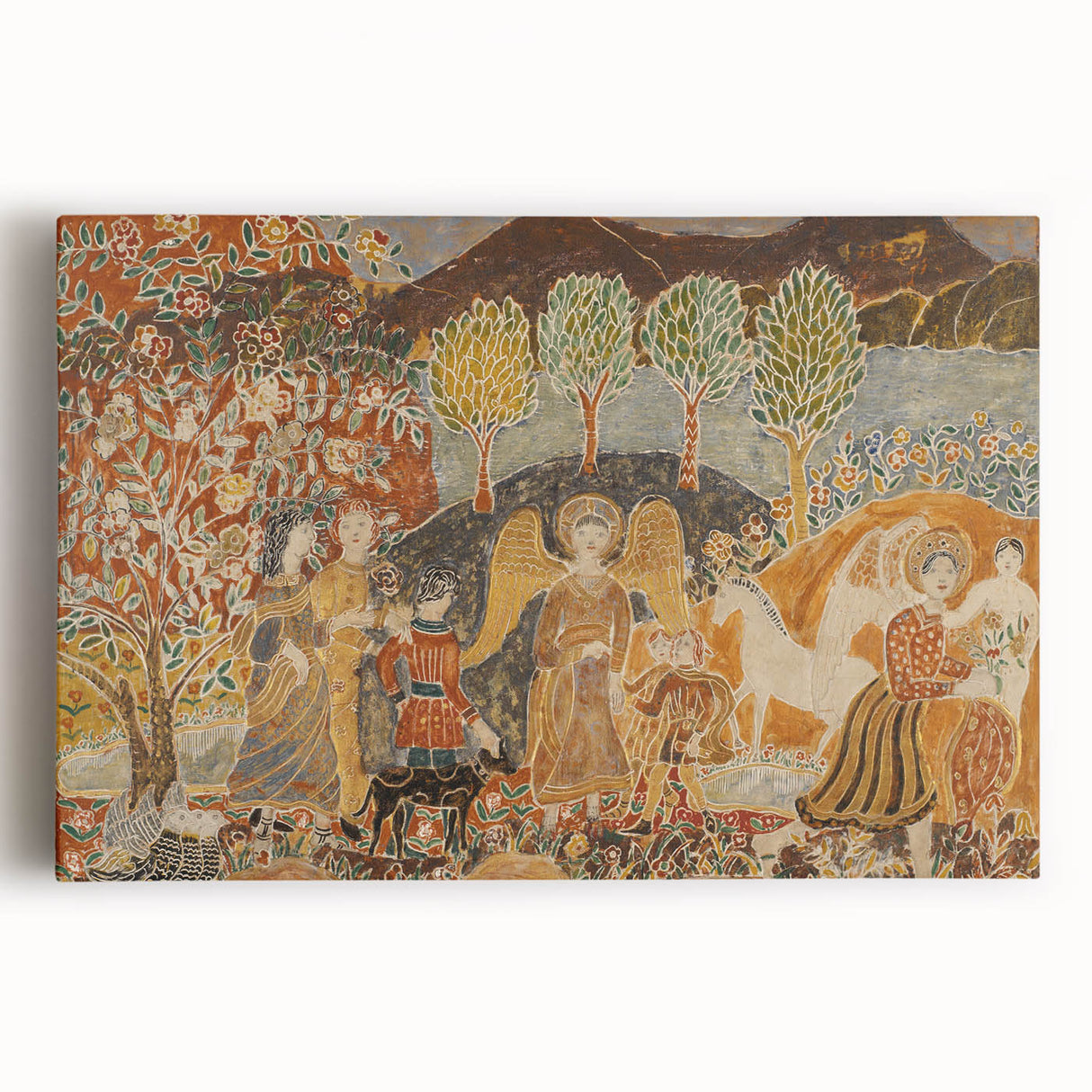 Angelic Garden Scene - Colorful Modern Wall Art with Floral Details