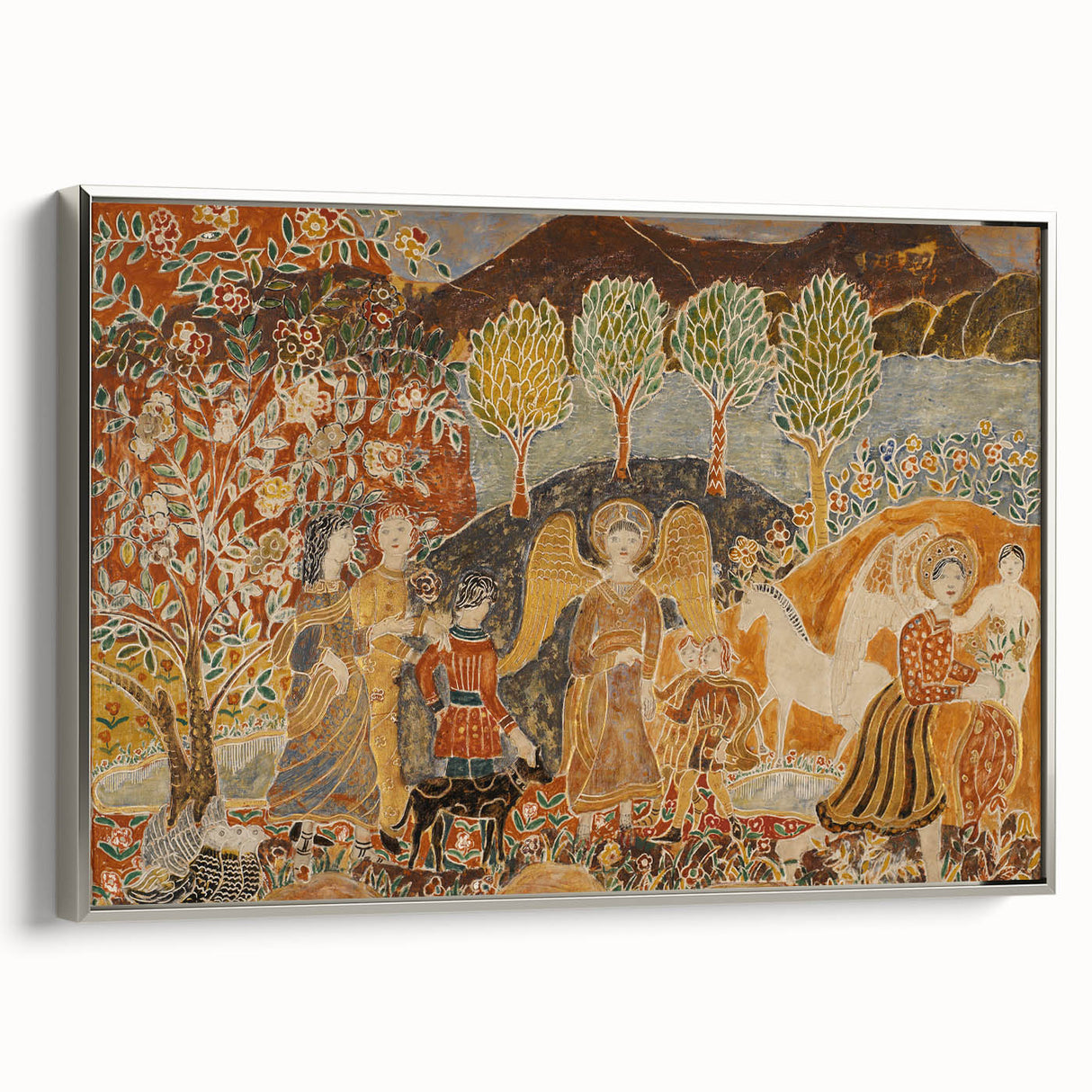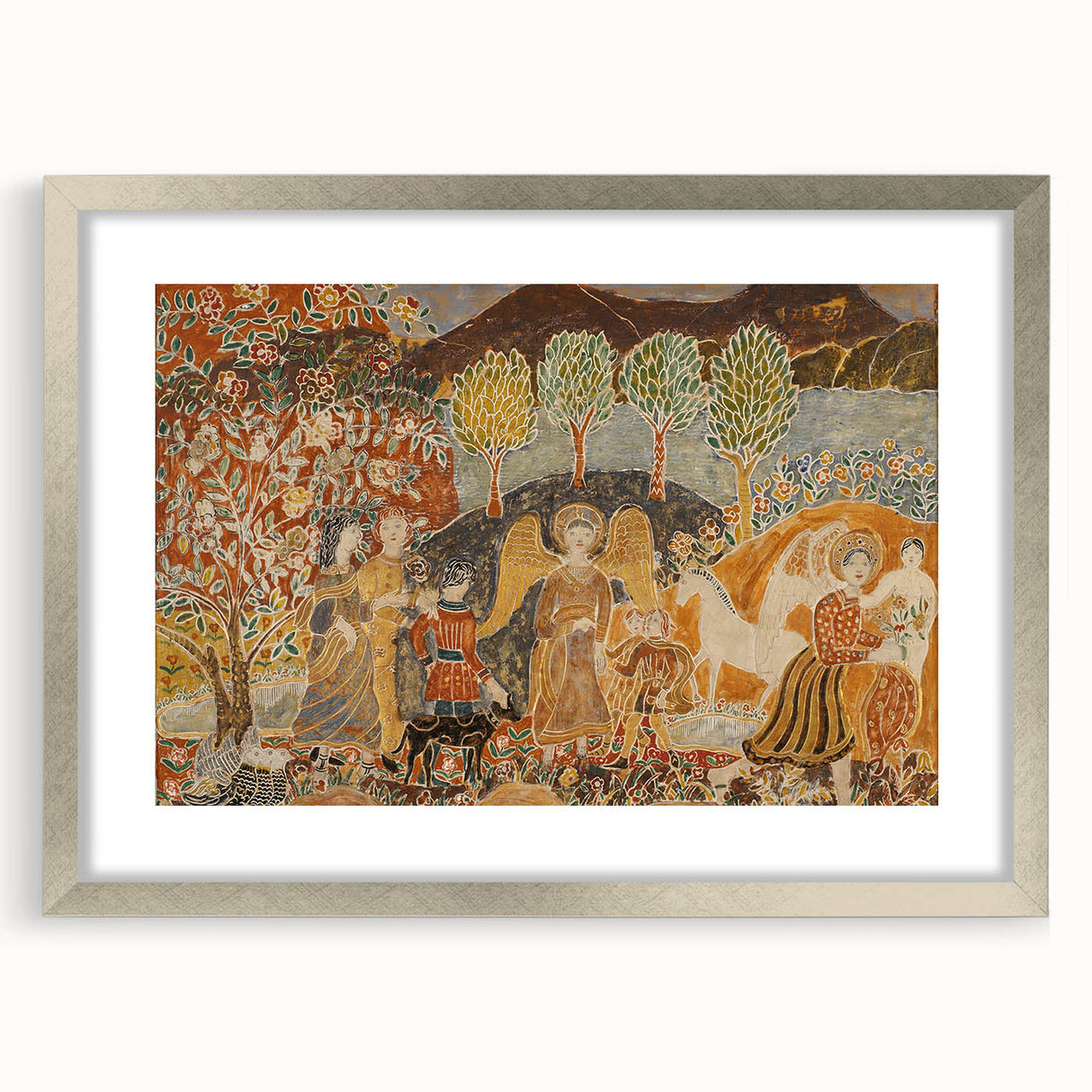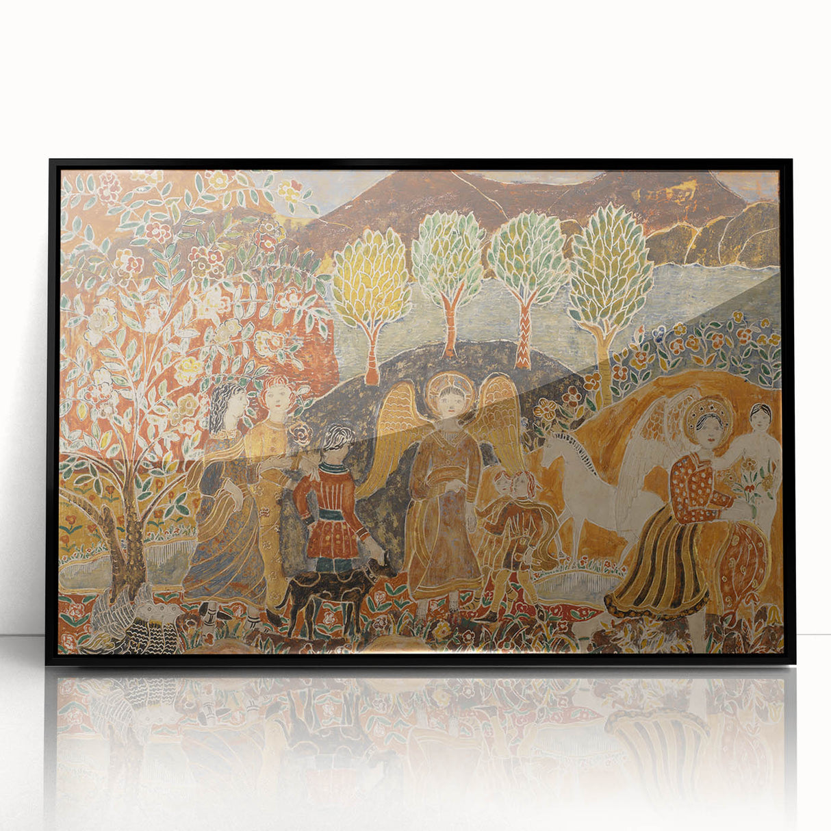 Angelic Garden Scene - Colorful Modern Wall Art with Floral Details