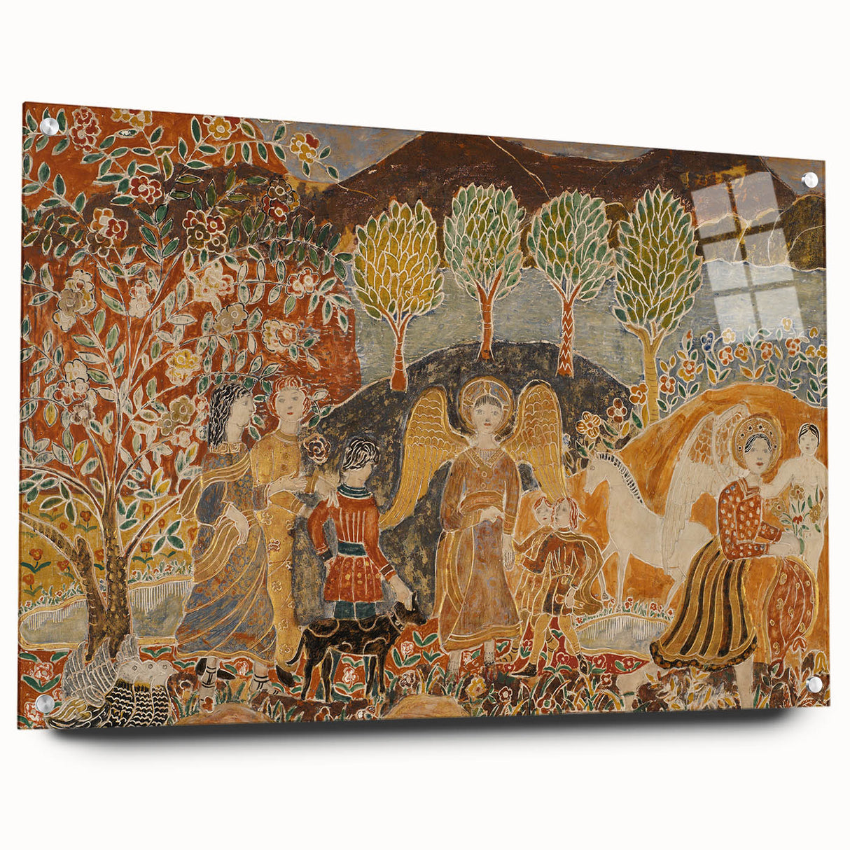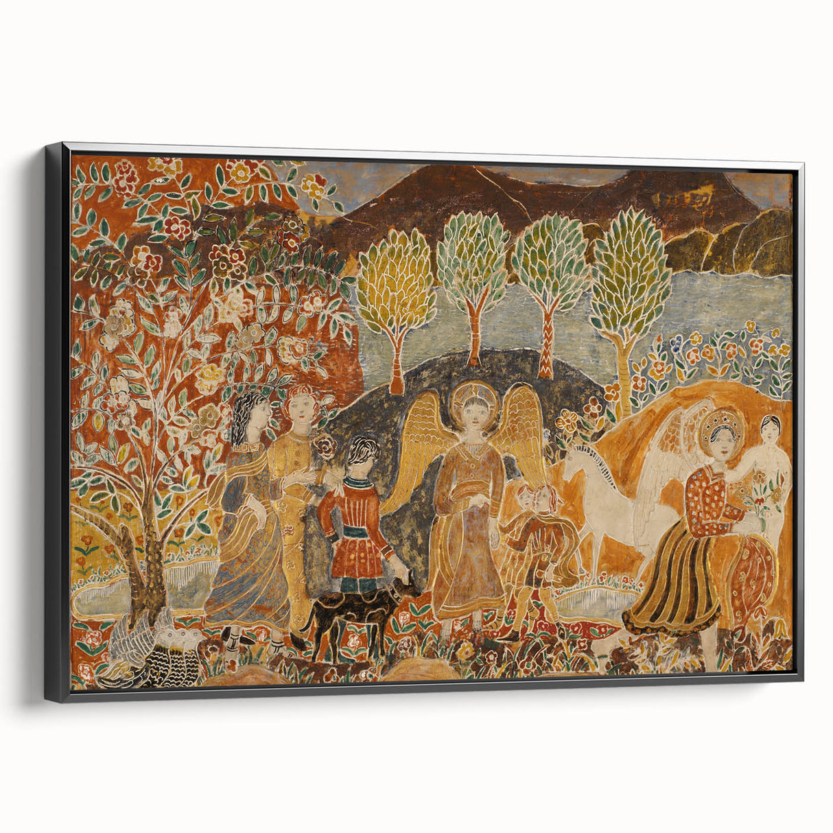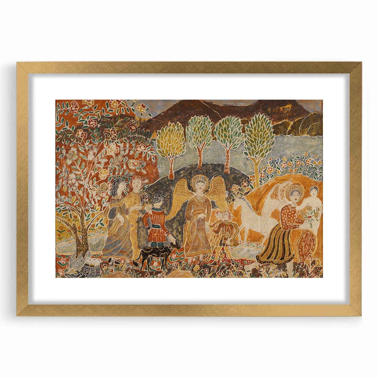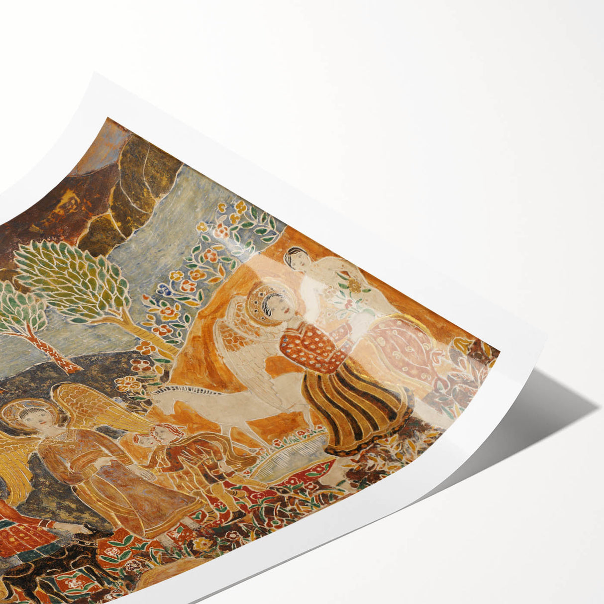 Angelic Garden Scene - Colorful Modern Wall Art with Floral Details