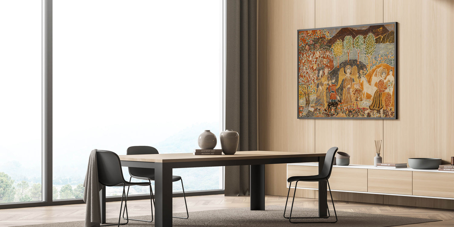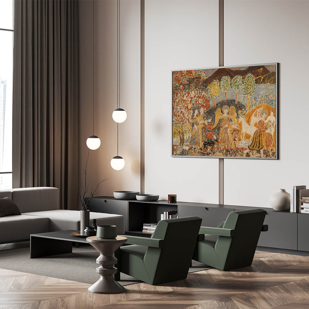 - Available in formats such as Stretched Canvas, Framed Canvas, and Acrylic Glass.