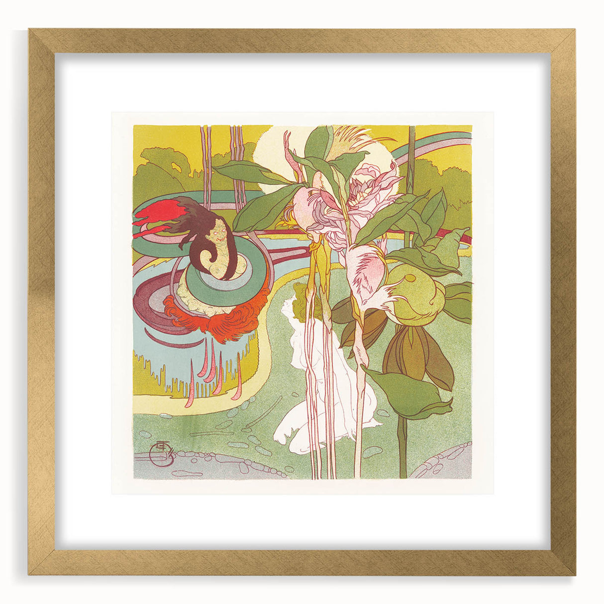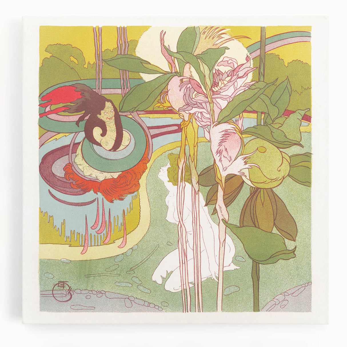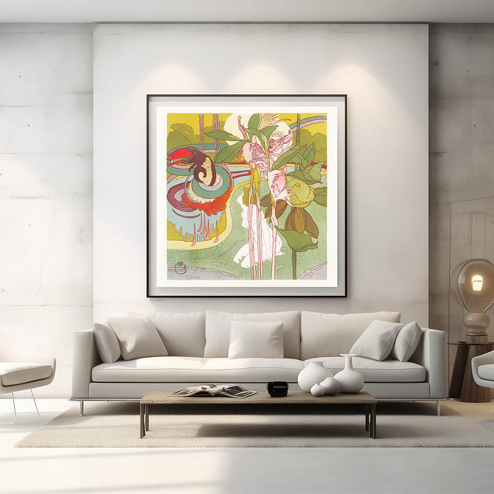 Bring a touch of Art Deco charm and nature’s beauty into your space with this mesmerizing wall art. This piece captures an abstract garden scene, filled with lush foliage, delicate flowers, and a blend of soft and vivid colors like yellow, green, pink, and red. The artwork’s swirling patterns and elegant lines create a sense of movement and whimsy, inviting the viewer into a serene yet imaginative world. Ideal for art lovers who appreciate intricate details and the iconic style of the 1920s, this print adds a unique touch of elegance and creativity to any room.