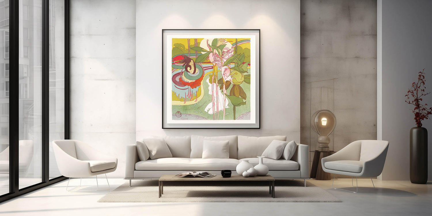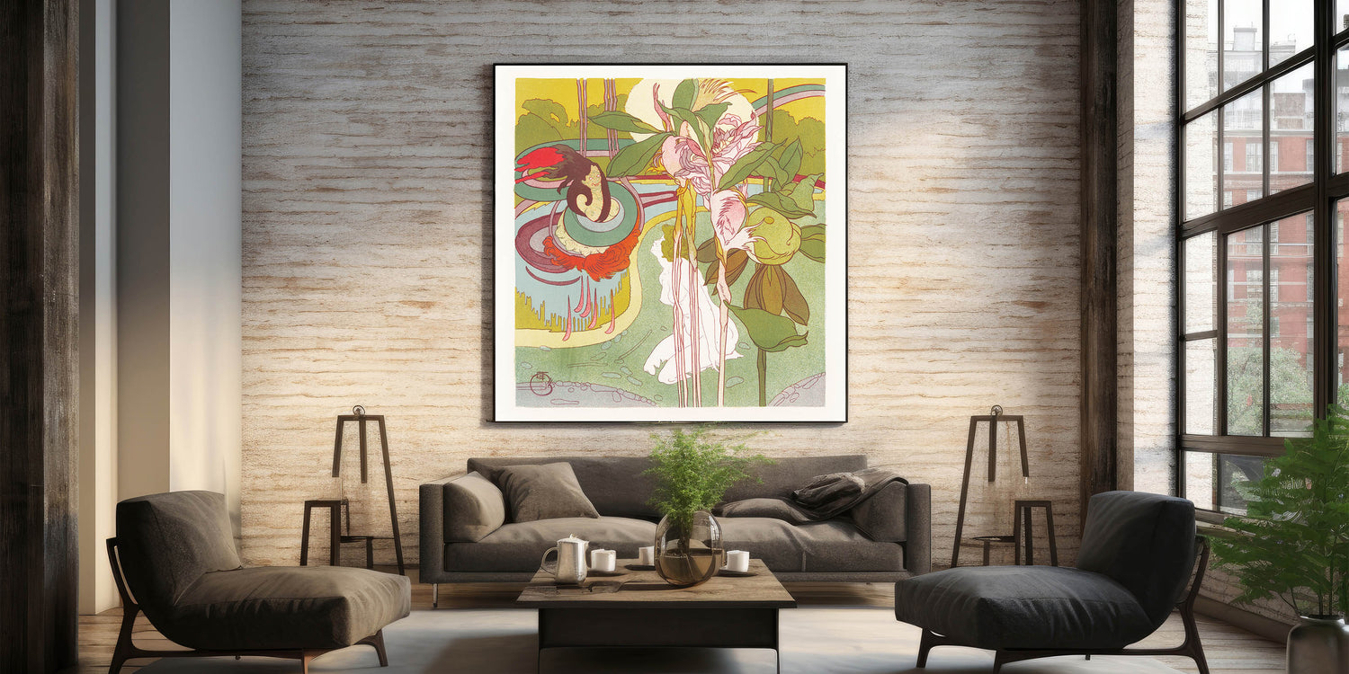 Add a burst of color and Art Deco sophistication to your home with this enchanting garden-inspired artwork, perfect for those who love both nature and timeless design.