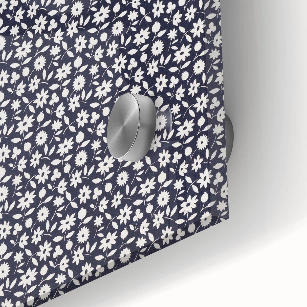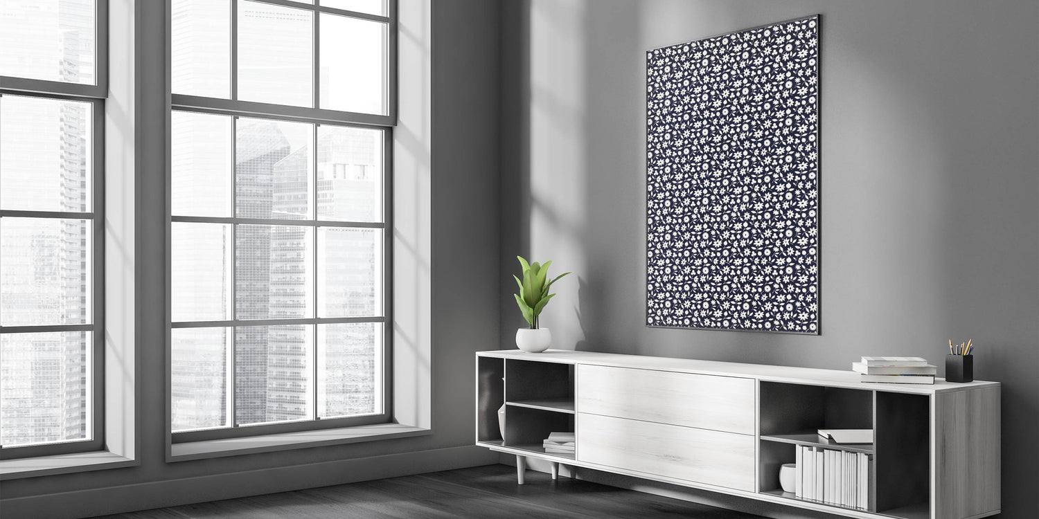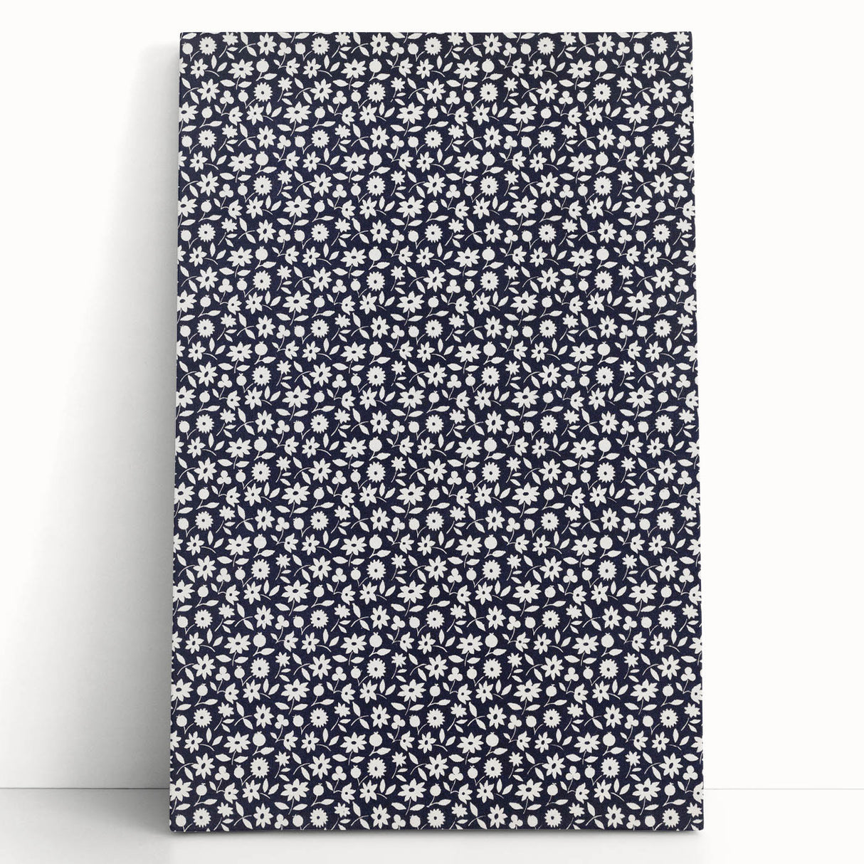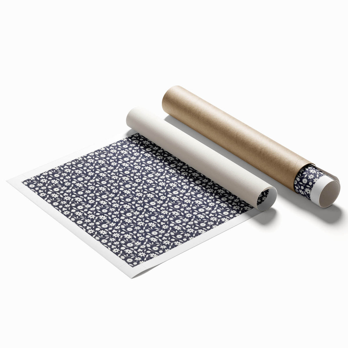 Bring a touch of sophistication to your space with this Art Deco-inspired floral pattern in a timeless palette of white and deep navy. The intricate white flowers are delicately arranged on a rich navy background, creating a harmonious balance of contrast and elegance. This pattern evokes the classic style of Art Deco, making it a perfect addition for those who appreciate vintage-inspired decor with a modern twist. Ideal for use as wall art, this piece can enhance bedrooms, living rooms, or even office spaces with its subtle yet captivating floral charm.