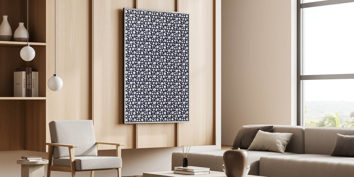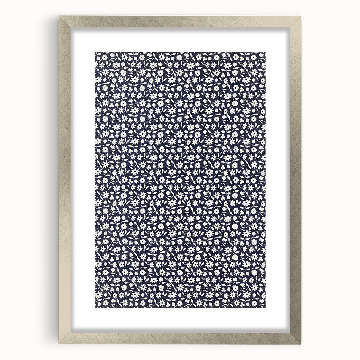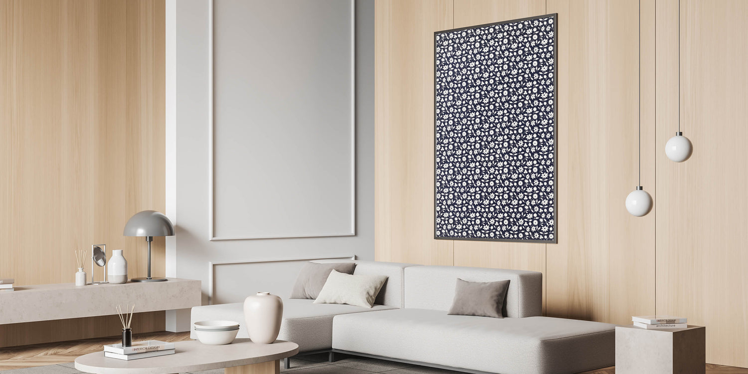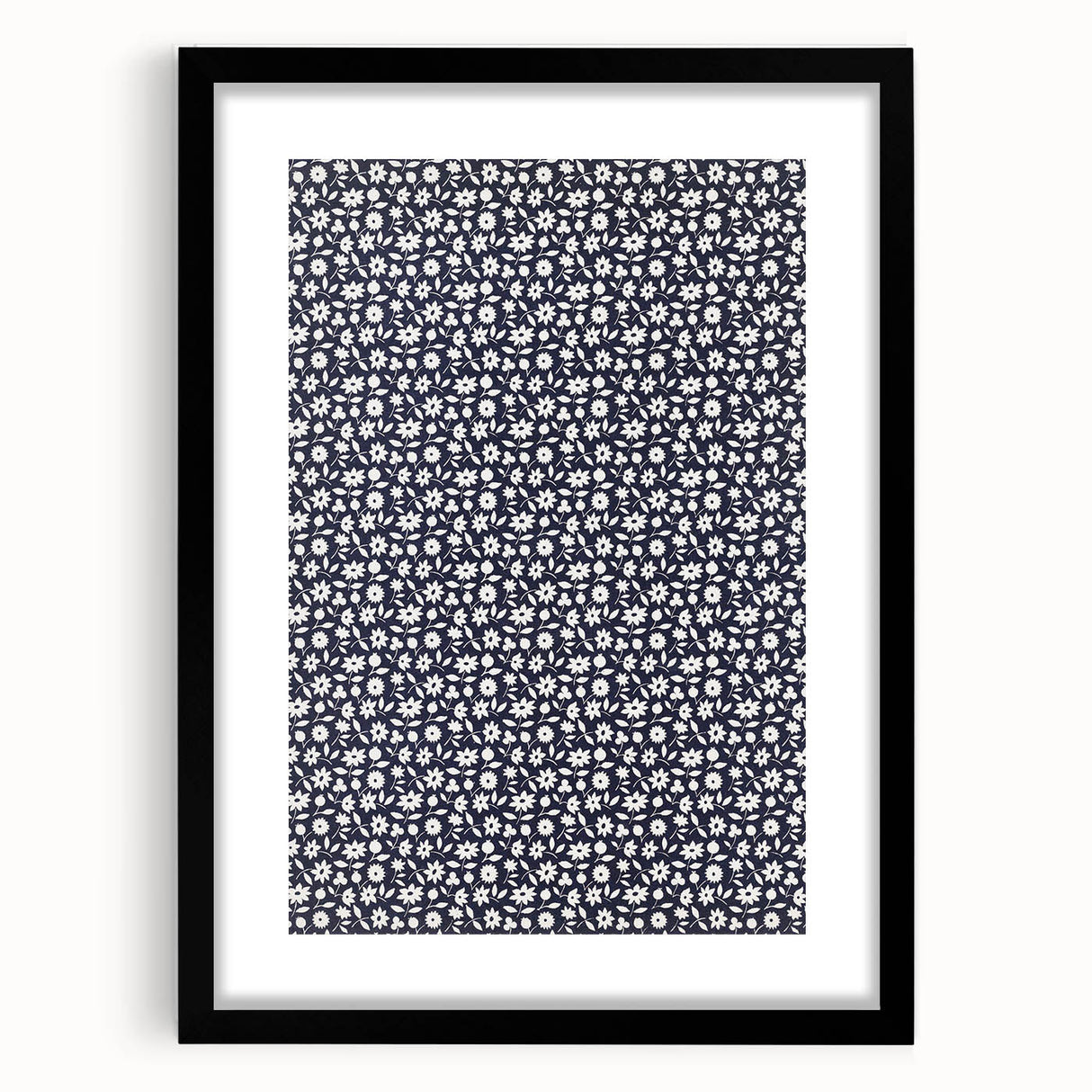 Bring a touch of sophistication to your space with this Art Deco-inspired floral pattern in a timeless palette of white and deep navy. The intricate white flowers are delicately arranged on a rich navy background, creating a harmonious balance of contrast and elegance. This pattern evokes the classic style of Art Deco, making it a perfect addition for those who appreciate vintage-inspired decor with a modern twist. Ideal for use as wall art, this piece can enhance bedrooms, living rooms, or even office spaces with its subtle yet captivating floral charm.