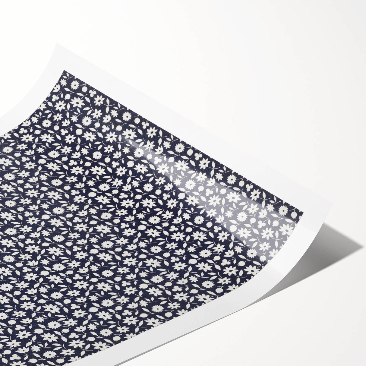 - Timeless Floral Pattern: Features an elegant combination of white flowers on a navy background, inspired by Art Deco aesthetics.