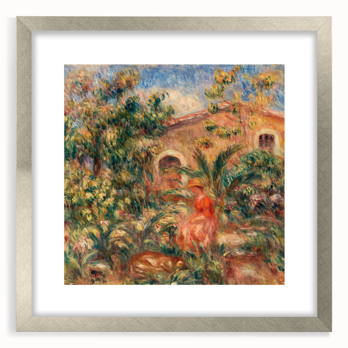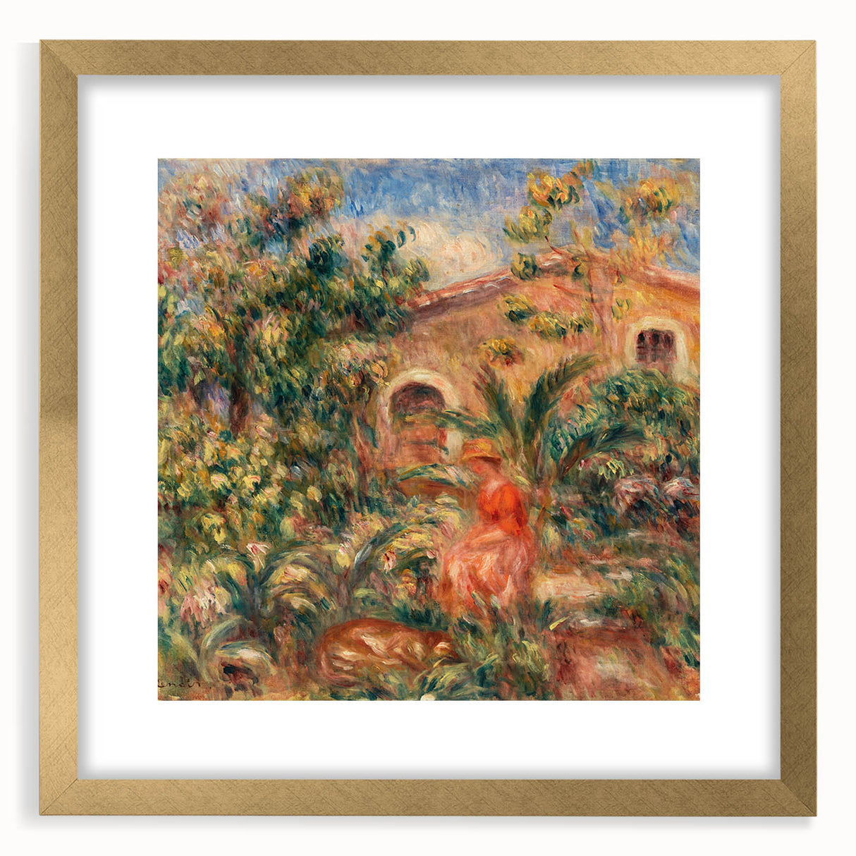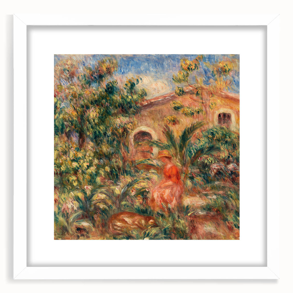 Bring the warmth of the French countryside into your home with Pierre-Auguste Renoir’s "Farmhouse". This Impressionist masterpiece captures a serene garden scene bathed in soft, earthy tones. Renoir’s lush brushstrokes bring to life the vibrant greenery and delicate flowers surrounding the farmhouse, evoking the tranquility of rural life. In the foreground, a figure dressed in red adds a captivating touch, blending seamlessly into the surrounding landscape.