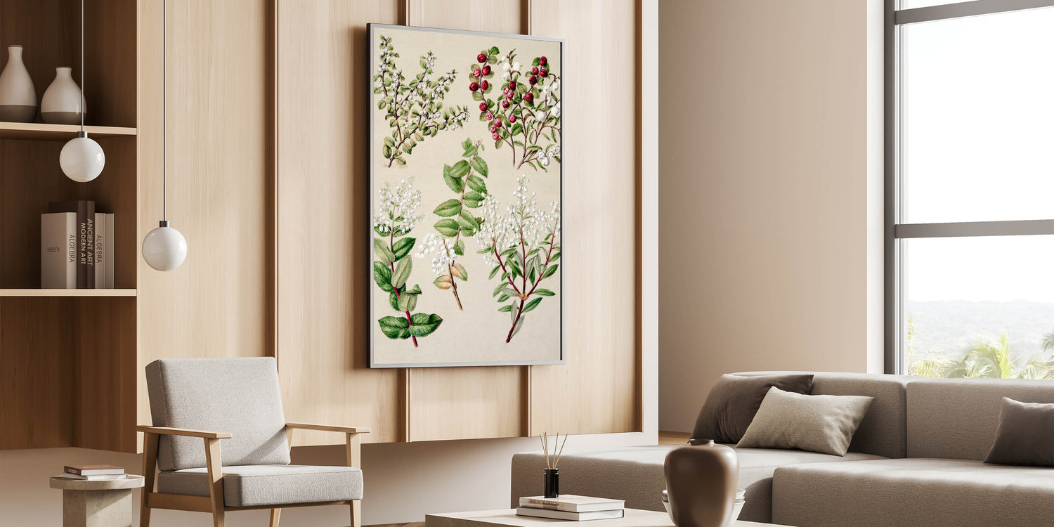 Fine Art Realism: Antique Botanical Illustration of Gaultheria Wall Art