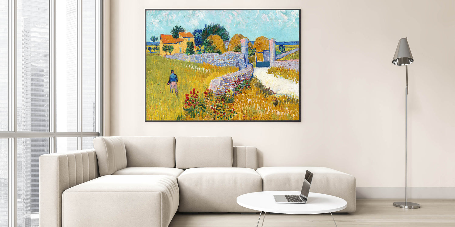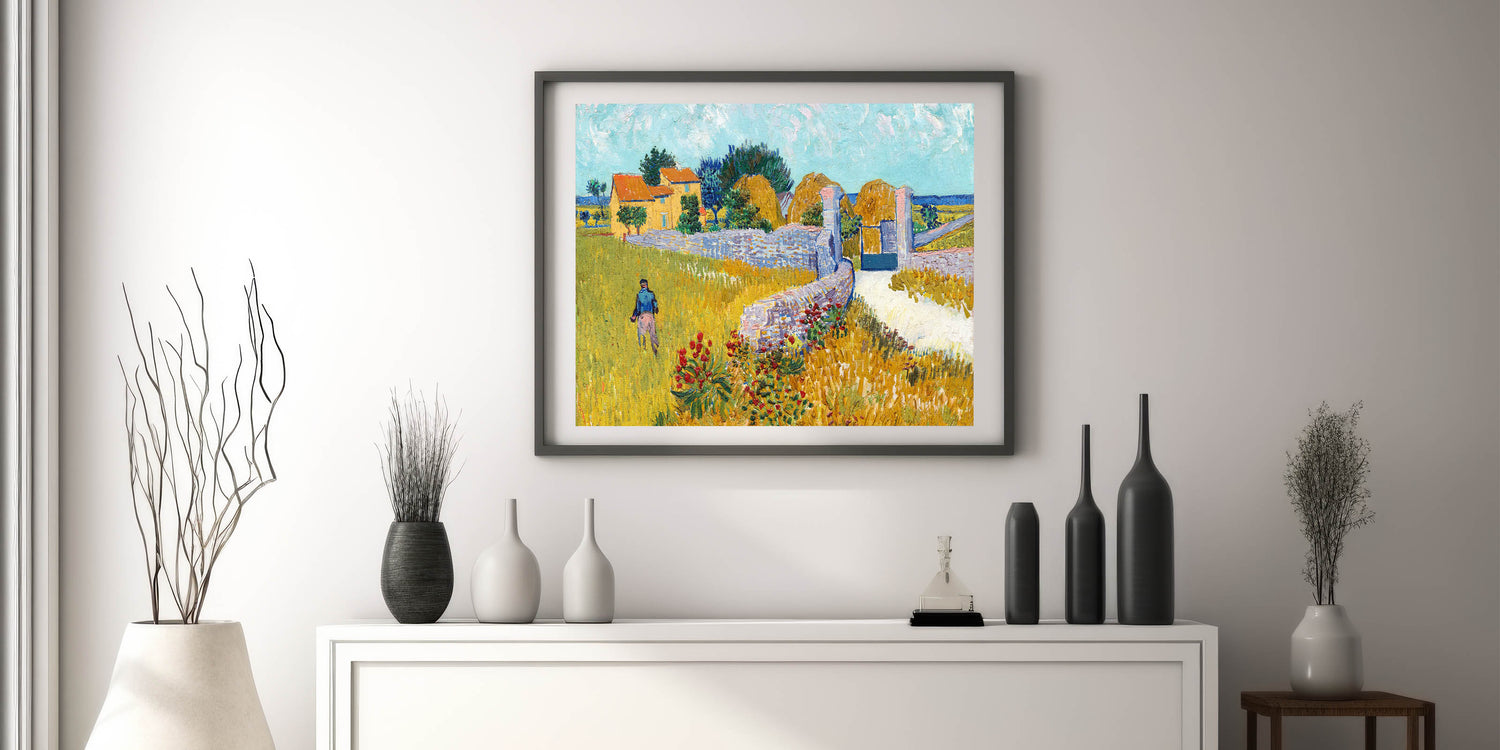 Brighten your decor with Vincent van Gogh’s vibrant Farmhouse in Provence. This stunning piece captures a sunny day in the French countryside, with bold colors and expressive brushstrokes that are hallmarks of Van Gogh’s style. The golden fields, red flowers, and iconic farmhouse bring the warmth and beauty of Provence to life, making it a perfect choice for those who appreciate lively and colorful art.