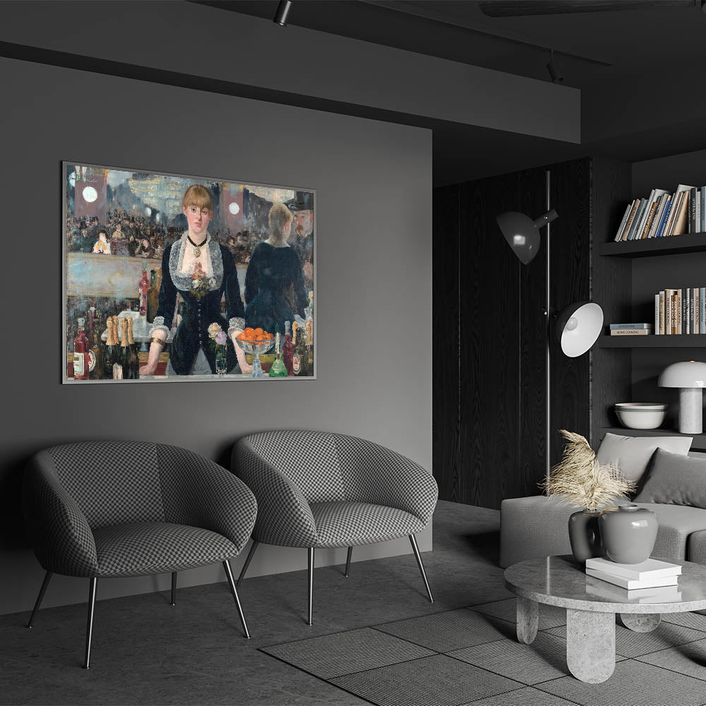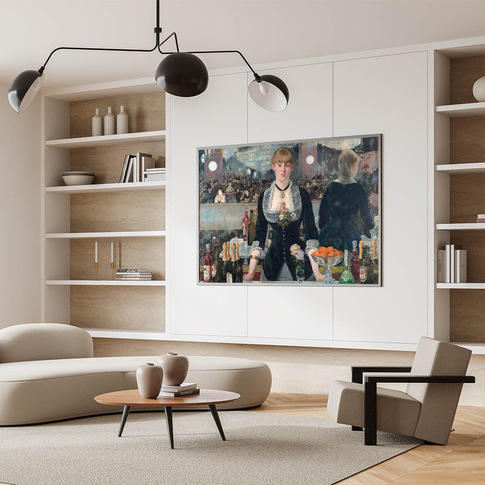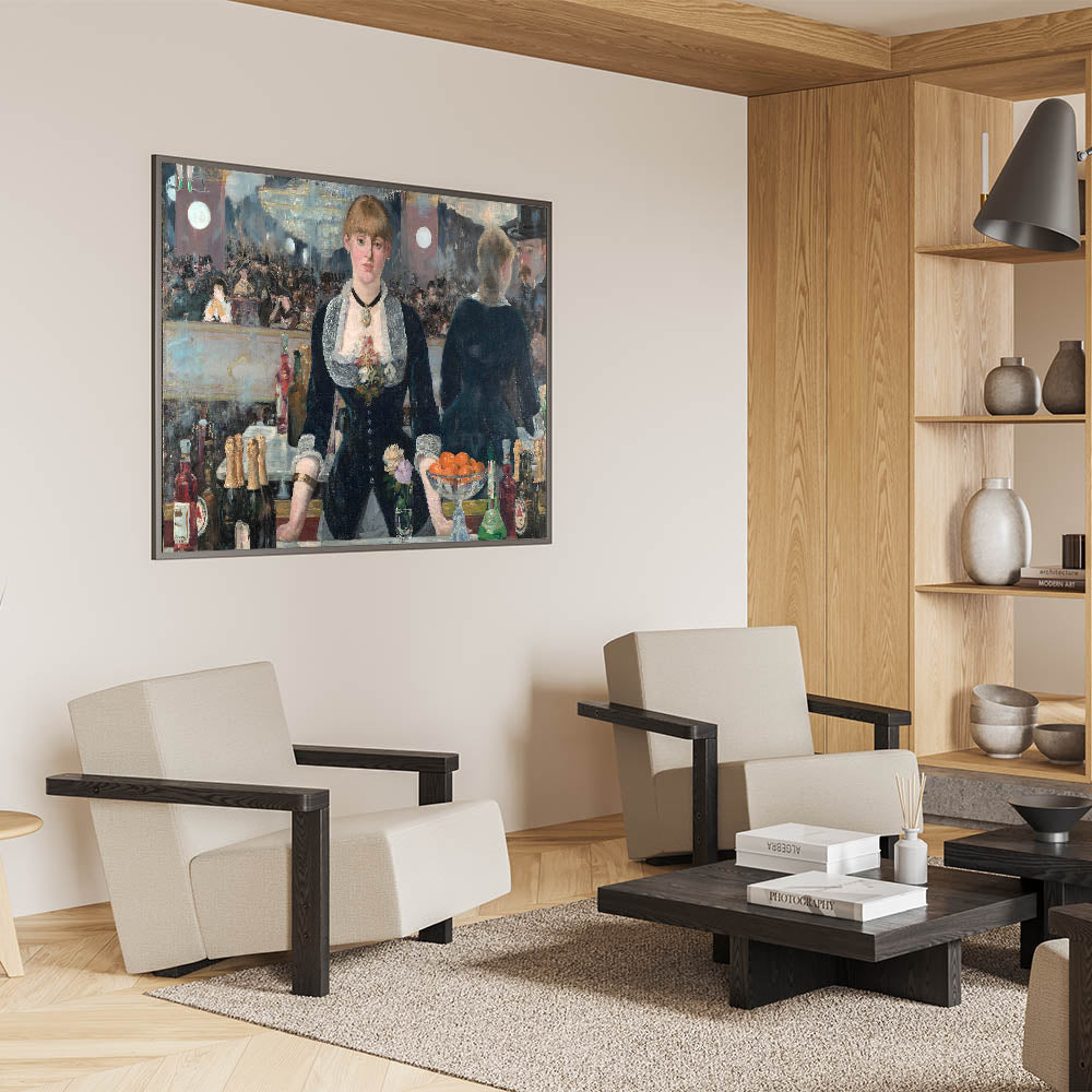 Enrich your space with this timeless work of art, blending elegance with a touch of Parisian glamour. Displayed in a living room or bar area, A Bar at the Folies-Bergère brings a dynamic, cultured vibe to your decor.