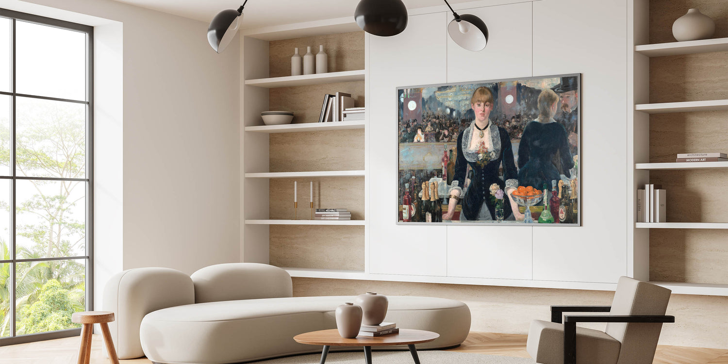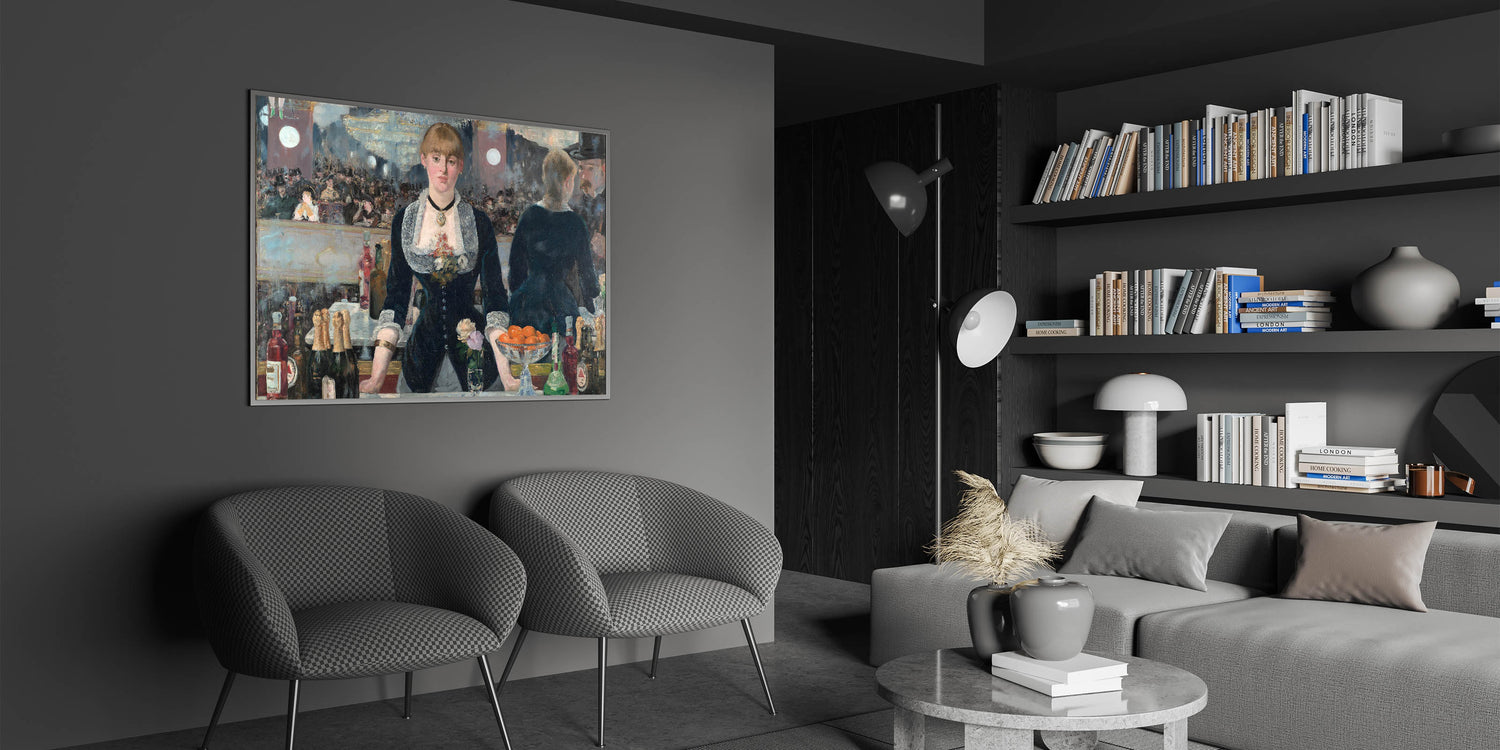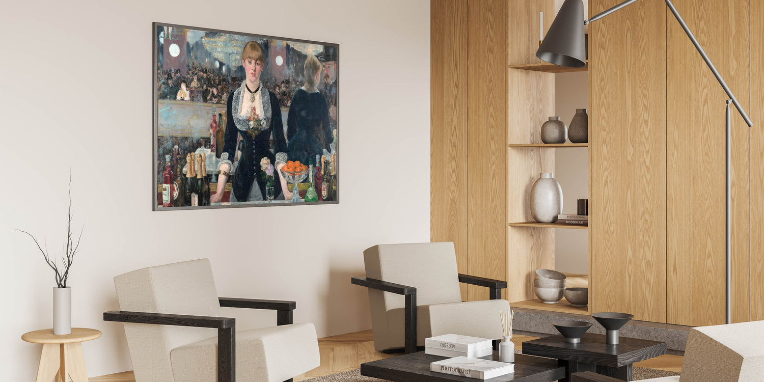 Enrich your space with this timeless work of art, blending elegance with a touch of Parisian glamour. Displayed in a living room or bar area, A Bar at the Folies-Bergère brings a dynamic, cultured vibe to your decor.