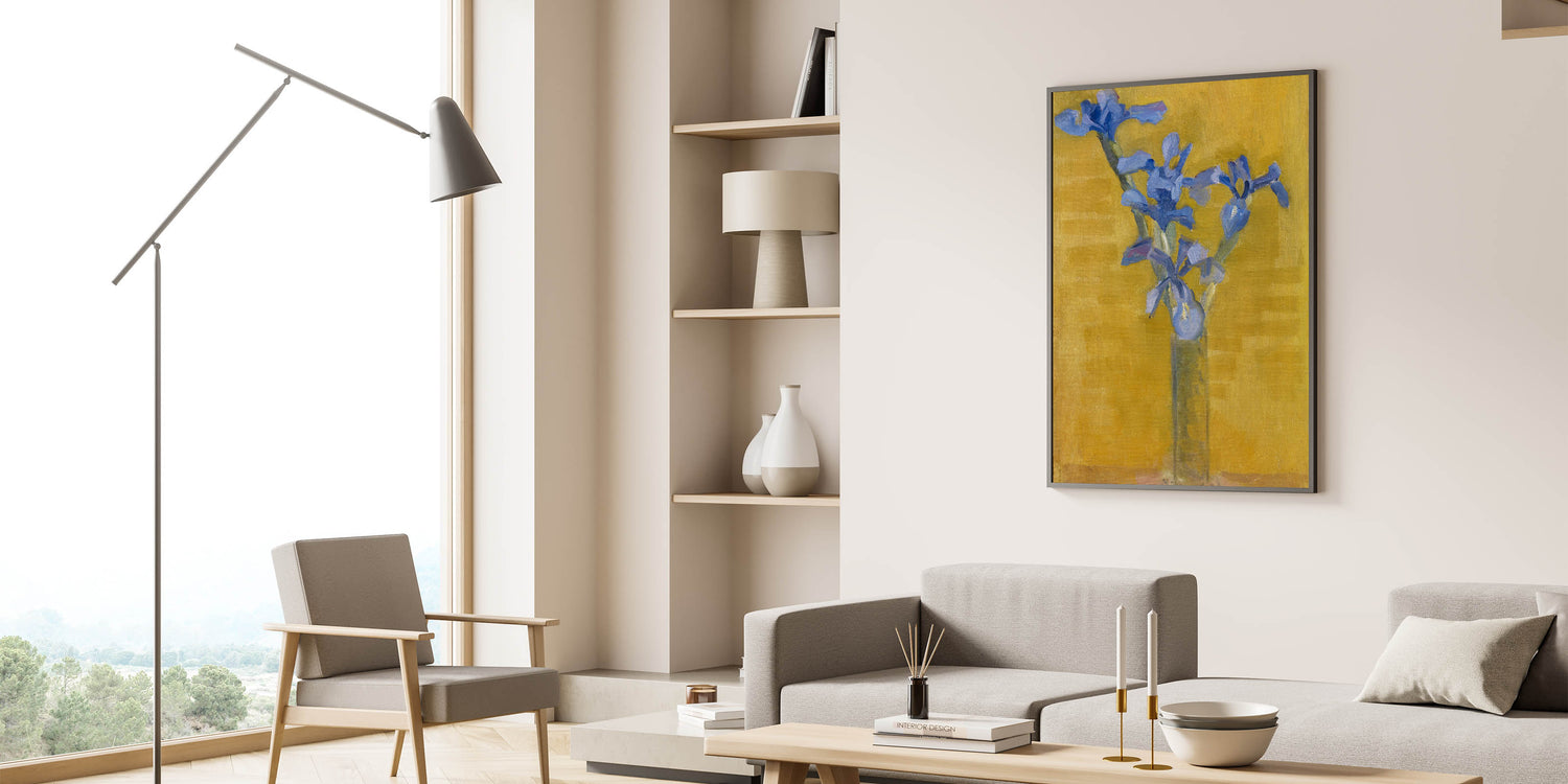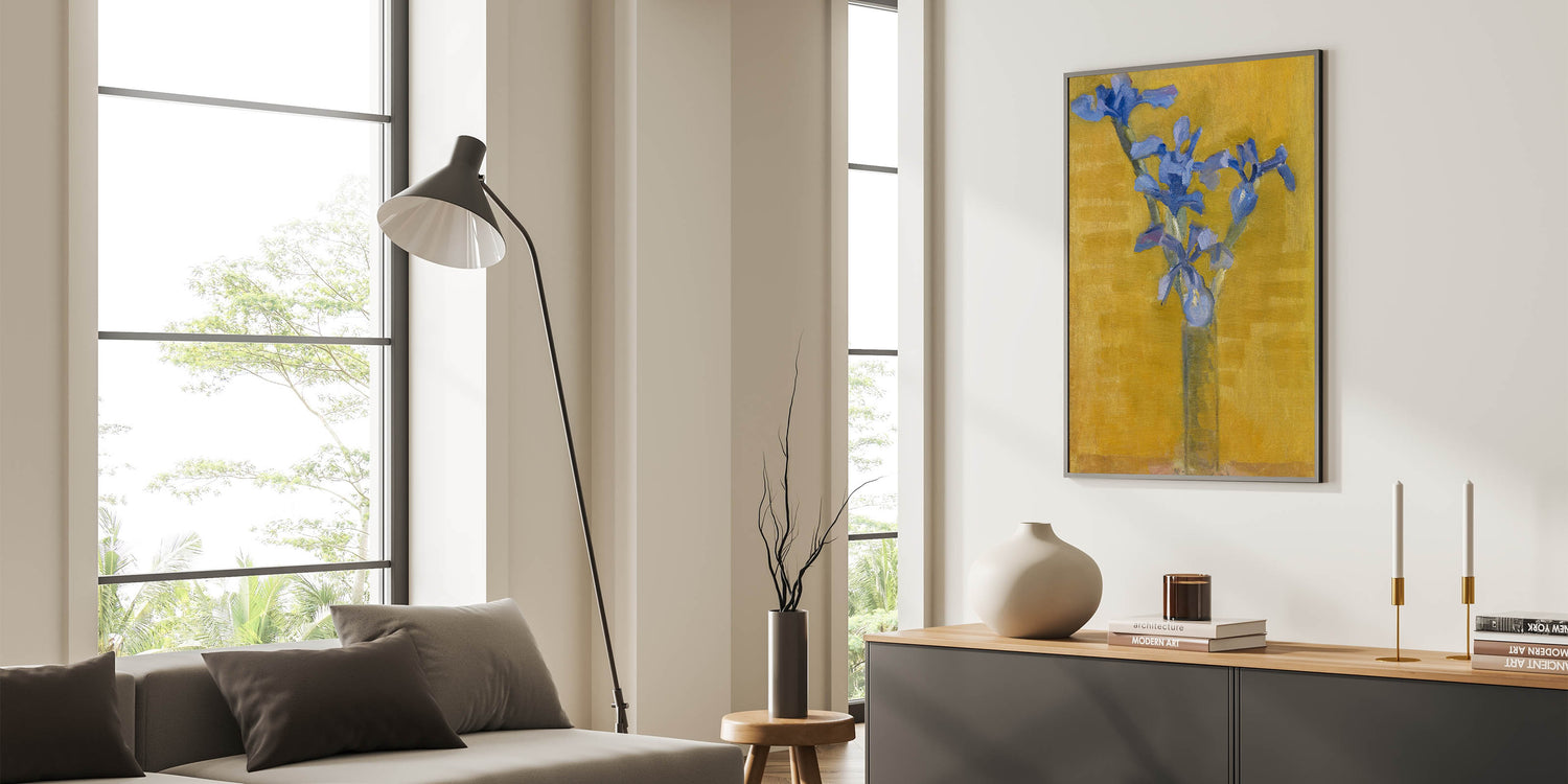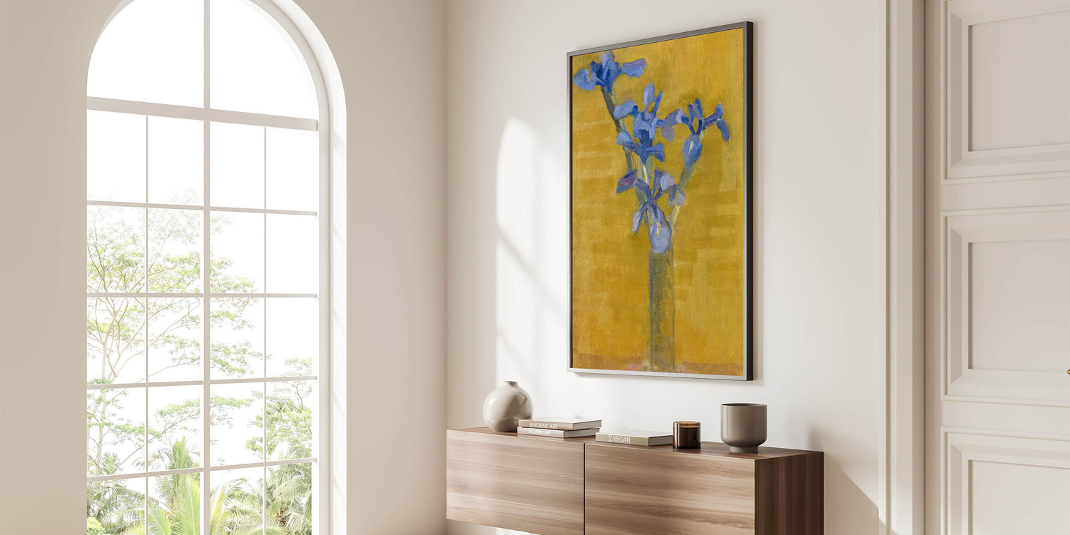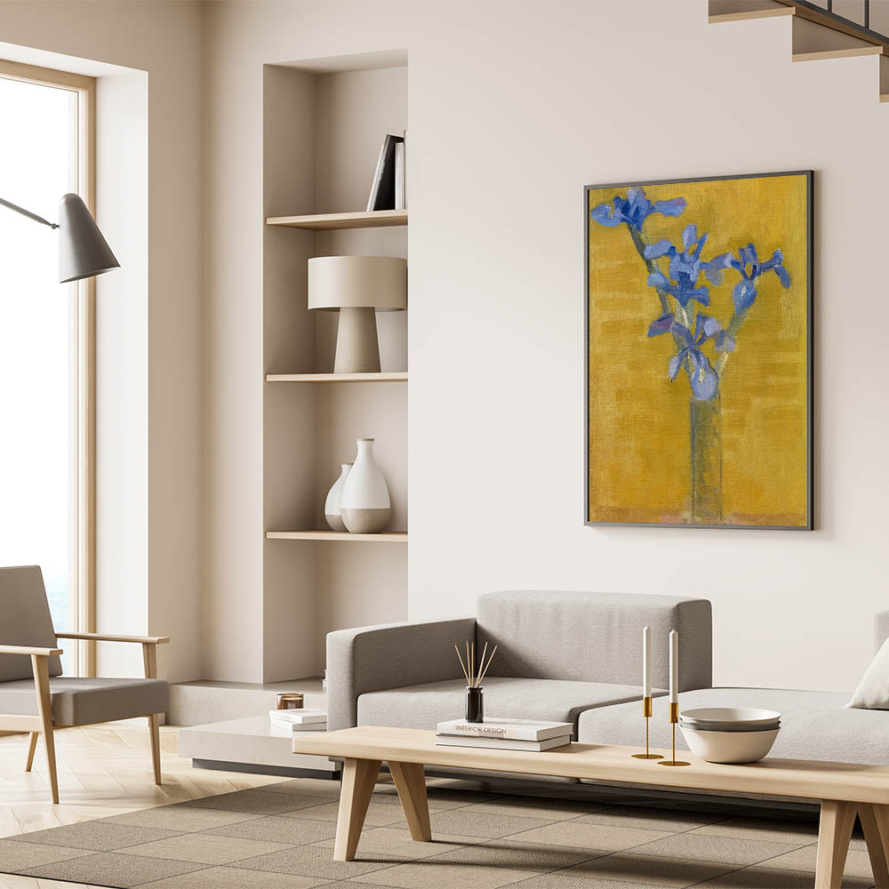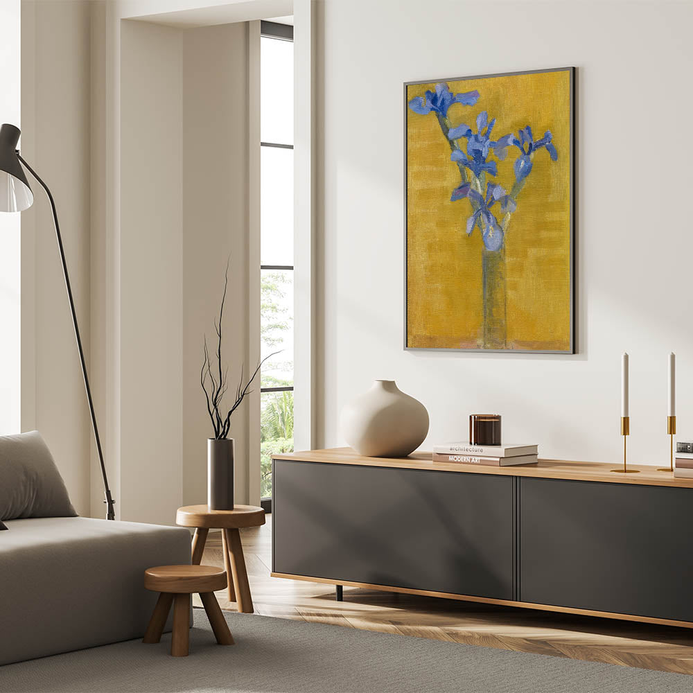 Transform your living space with the peaceful beauty of Mondrian’s Irises. This artwork is a perfect addition for art lovers seeking a blend of nature and modernity in their decor.