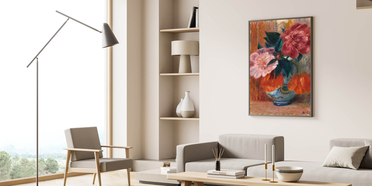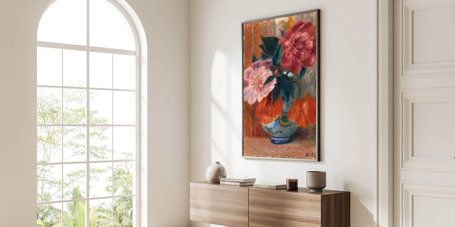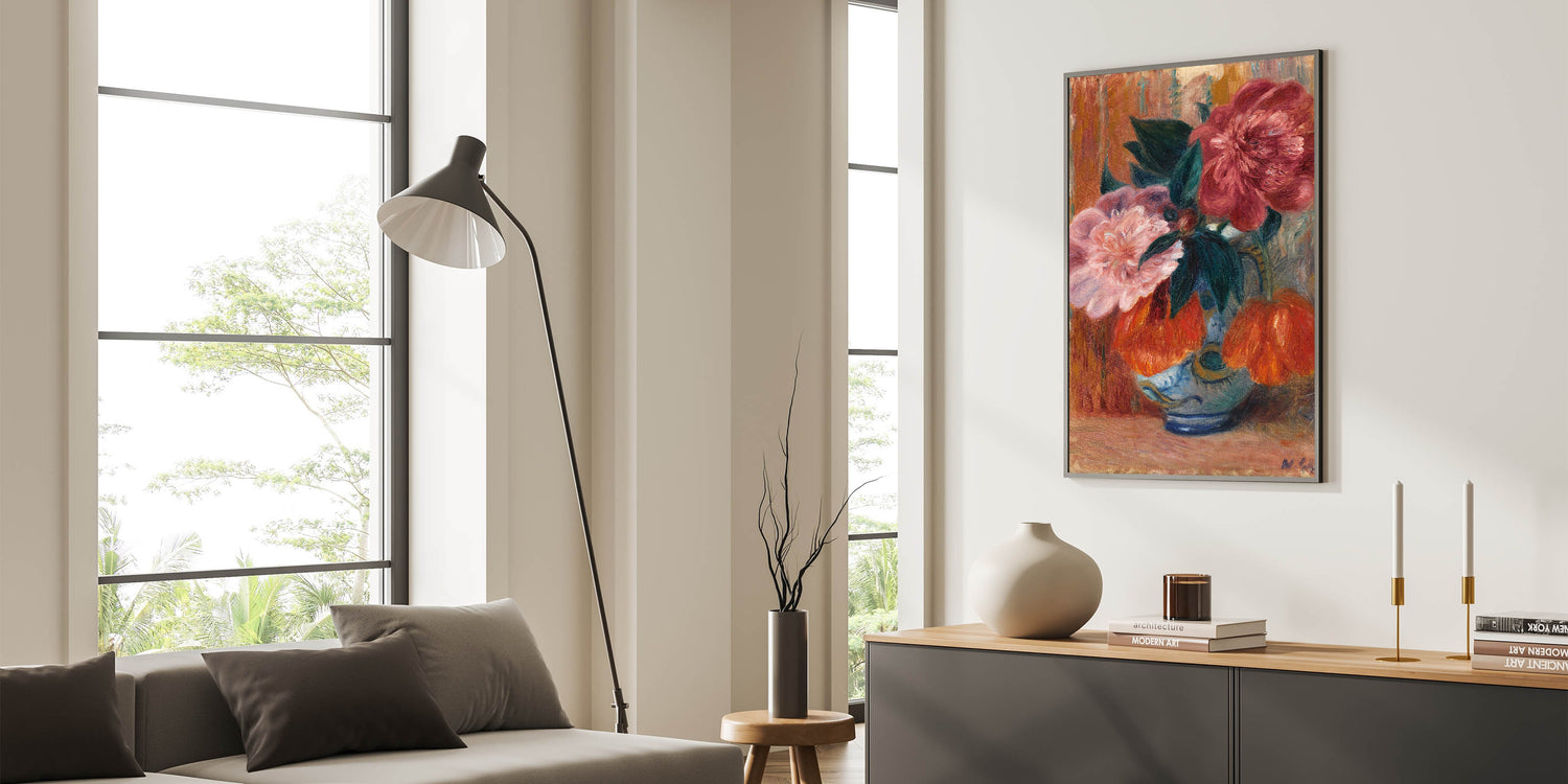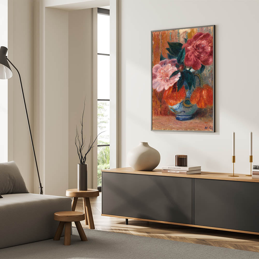 Add warmth and charm to your decor with this stunning floral still life, creating a captivating focal point that brings nature indoors.