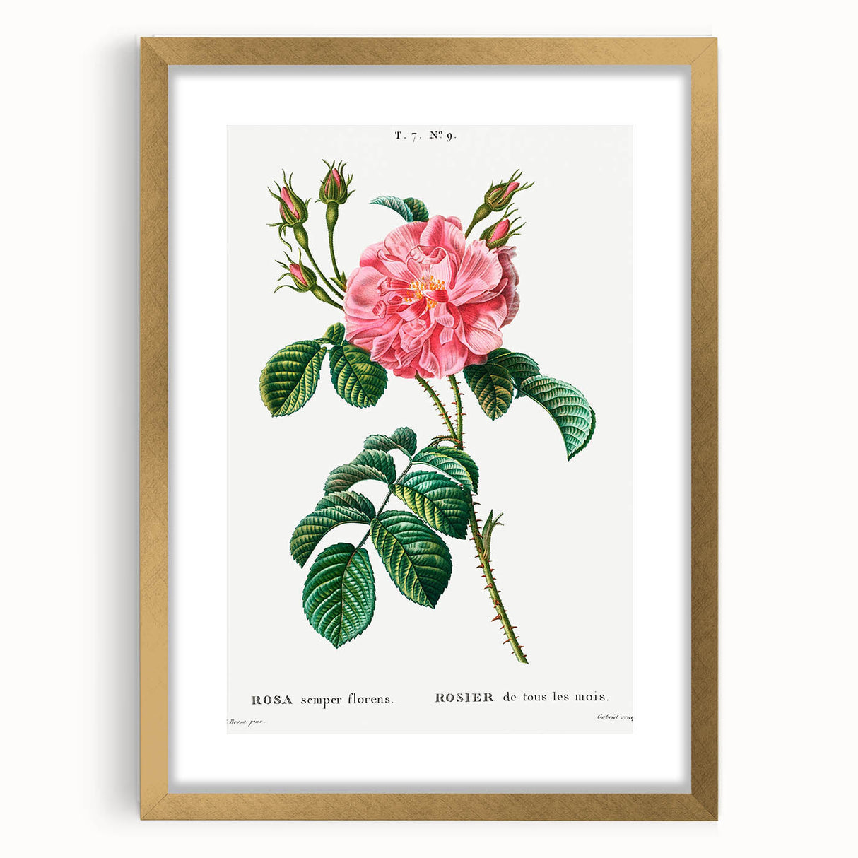 Add a touch of timeless botanical elegance to your space with Ever-blowing Rose (Rosa semper florens) by Pierre-Joseph Redouté. Known as the “Raphael of Flowers,” Redouté’s work beautifully captures the delicate intricacies of this blooming rose, a symbol of natural beauty and elegance. Reflecting the ideals of Neoclassicism, this artwork emphasizes balance, simplicity, and an appreciation for classical antiquity. Each petal and leaf is rendered with stunning detail, bringing a graceful floral accent to any decor.