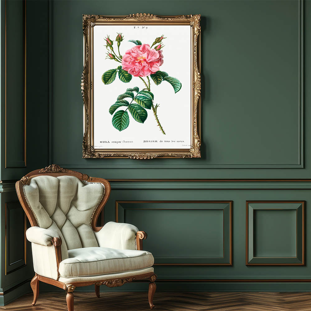 Neoclassical Art Print: Ever-blowing Rose by Redouté - Botanical Wall Art
