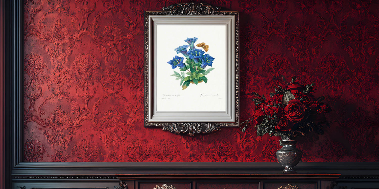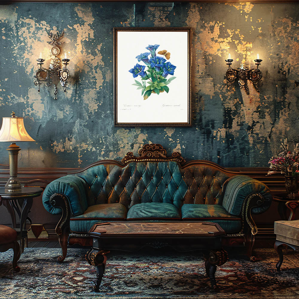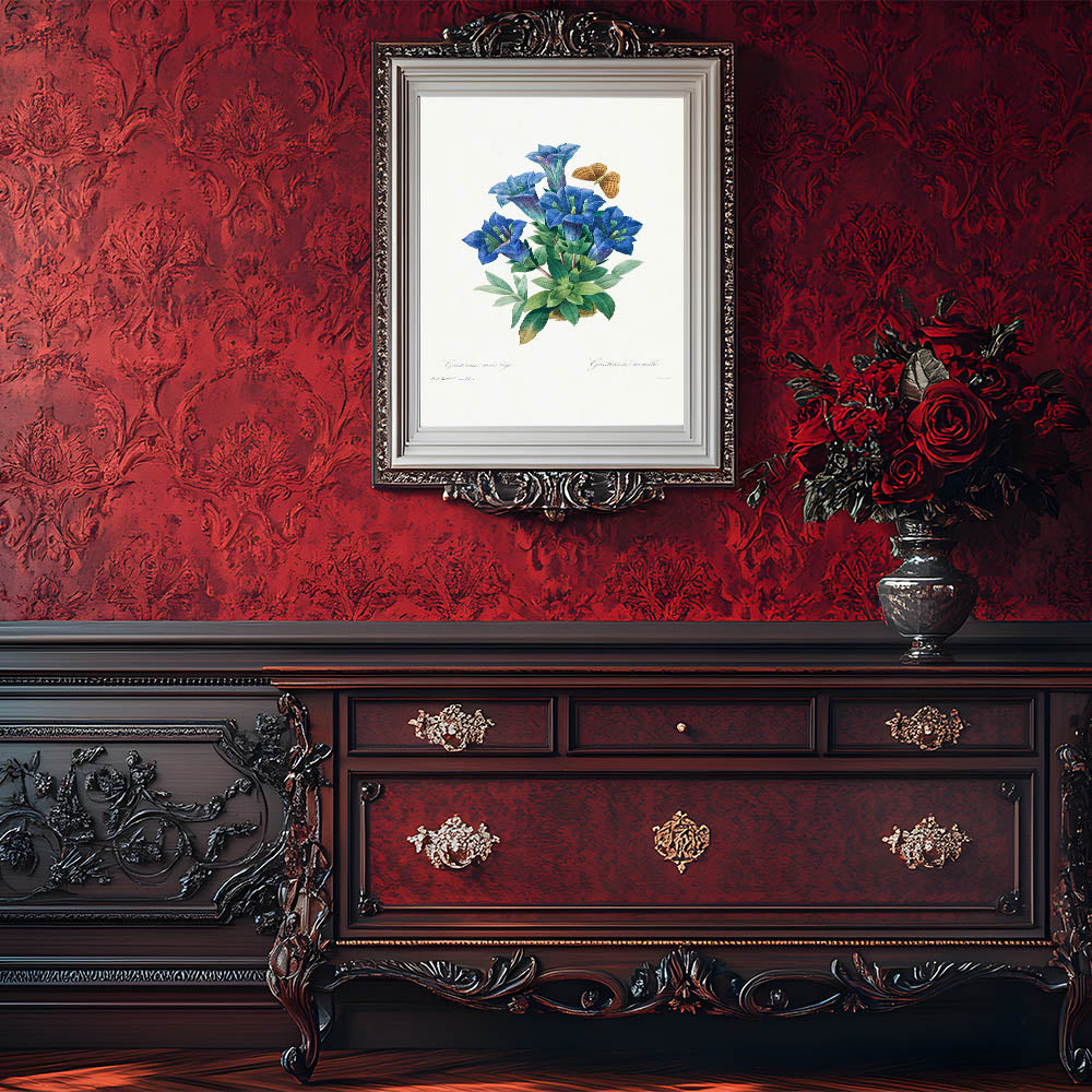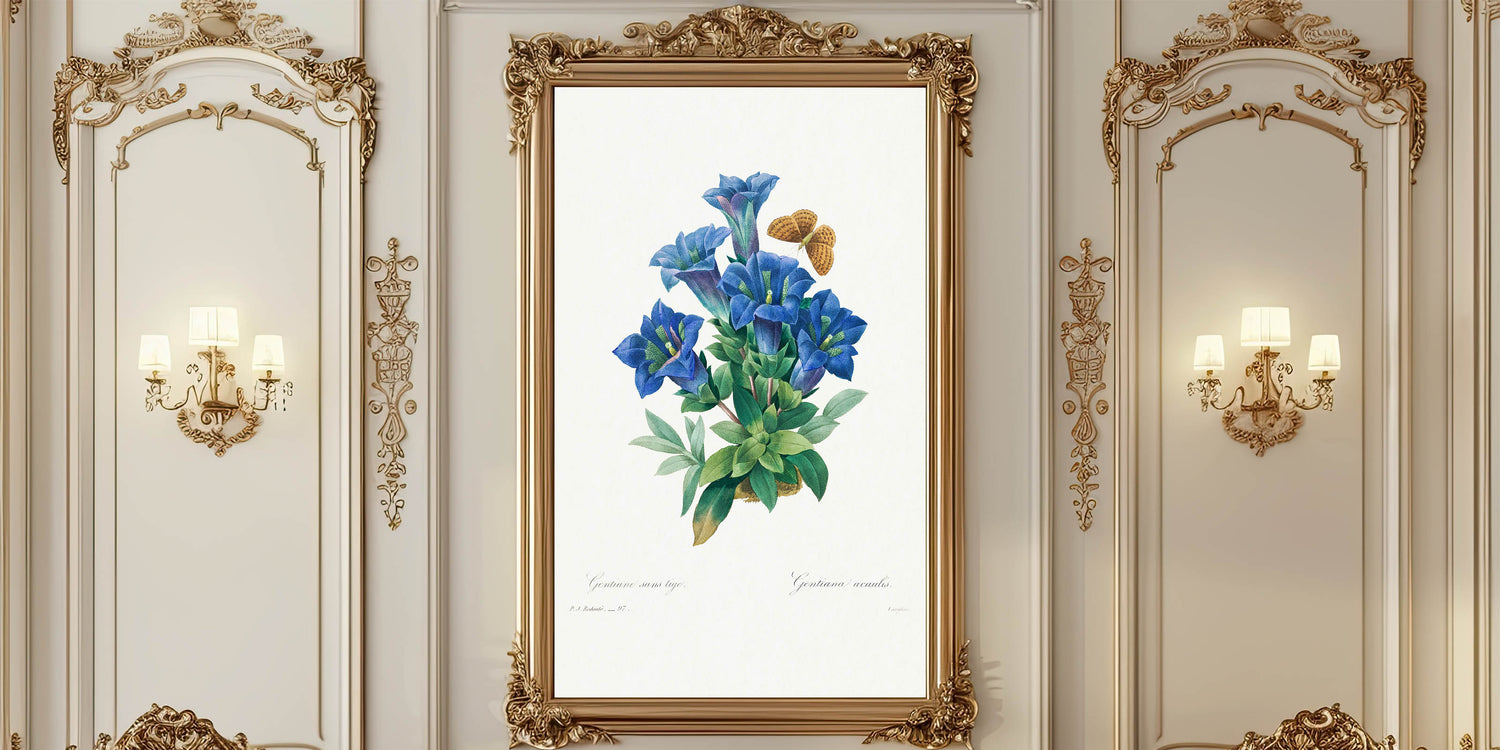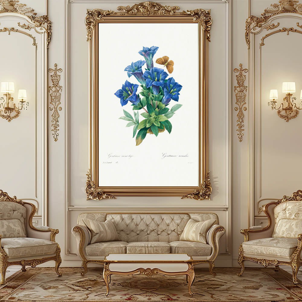 This stunning neoclassical art print features Gentiana Acaulis, masterfully illustrated by the acclaimed botanical artist Pierre-Joseph Redouté. Known for his detailed and scientifically accurate botanical works, Redouté’s portrayal of the Gentiana flowers reflects the idealism and simplicity in design, characteristic of neoclassicism. This elegant artwork brings a serene, natural element to your space, inspired by classical antiquity and Greco-Roman art’s revival during the 18th century.