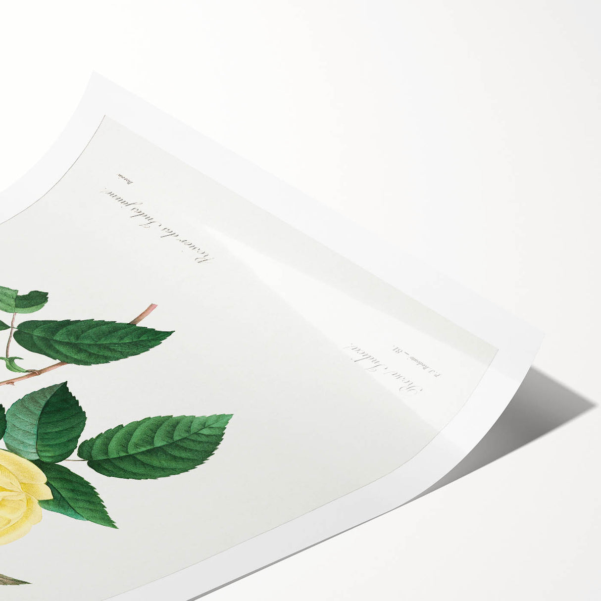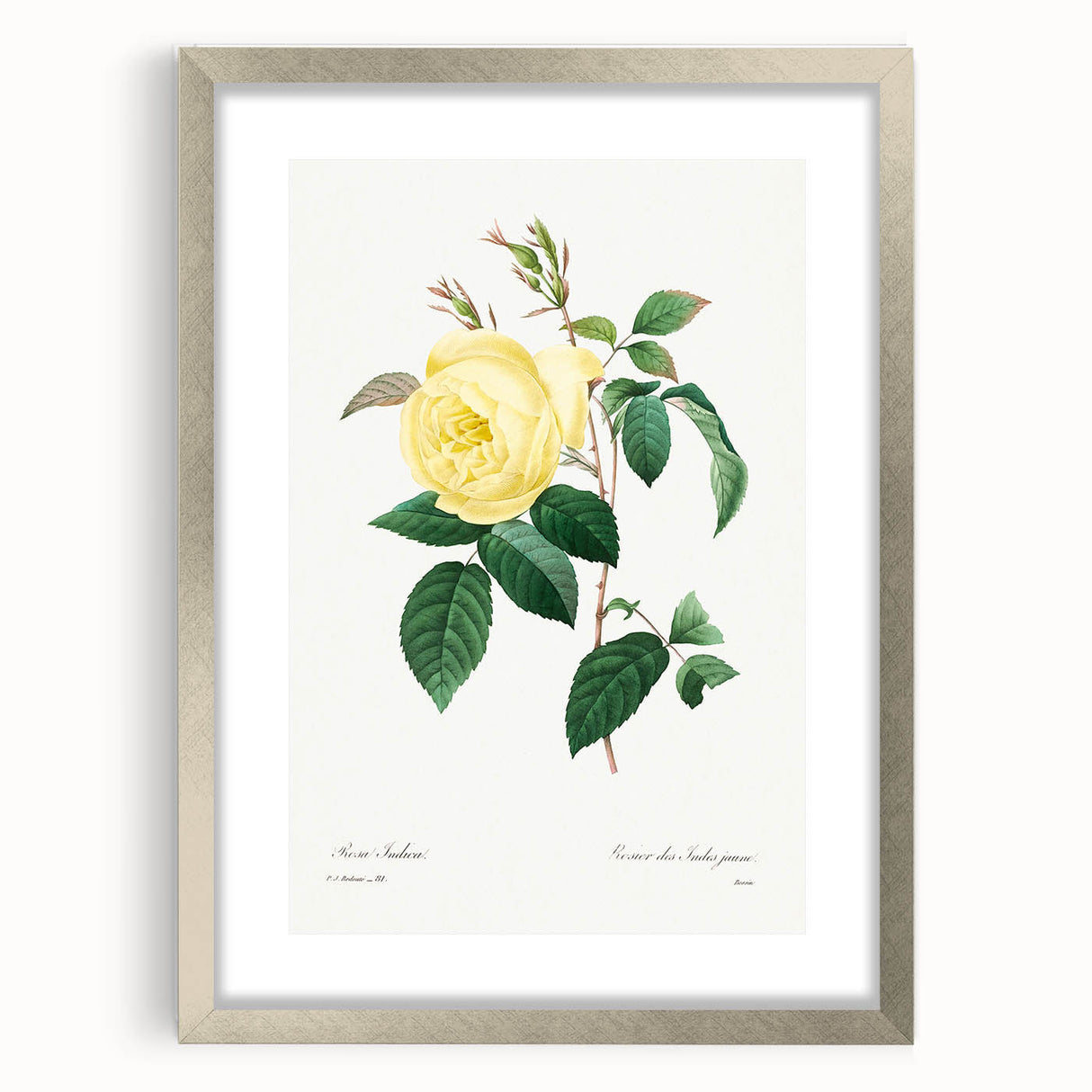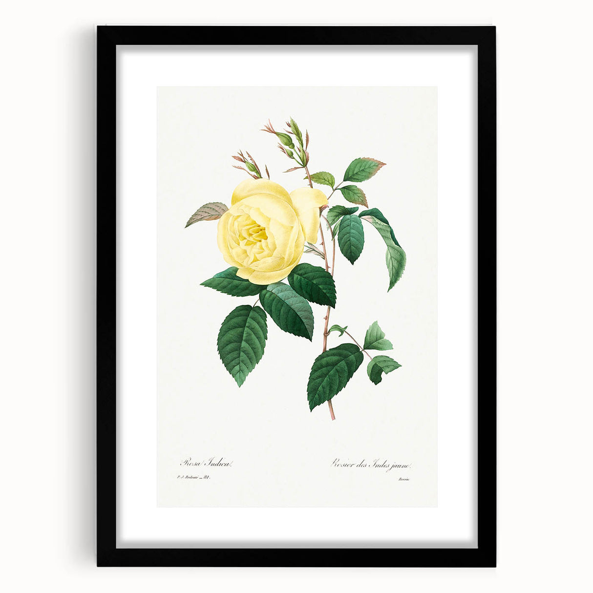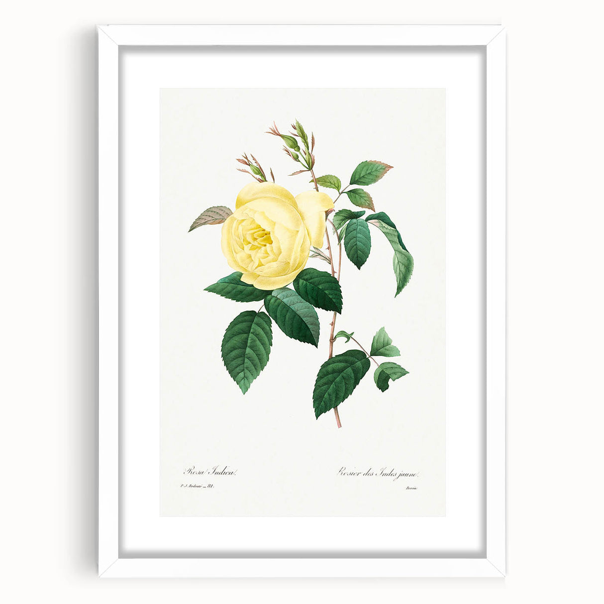 Neoclassical Art Print - Yellow Rose Botanical Illustration by Redouté