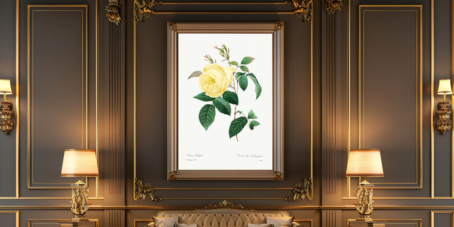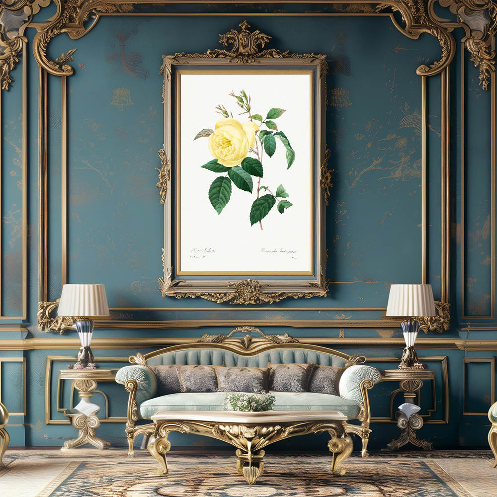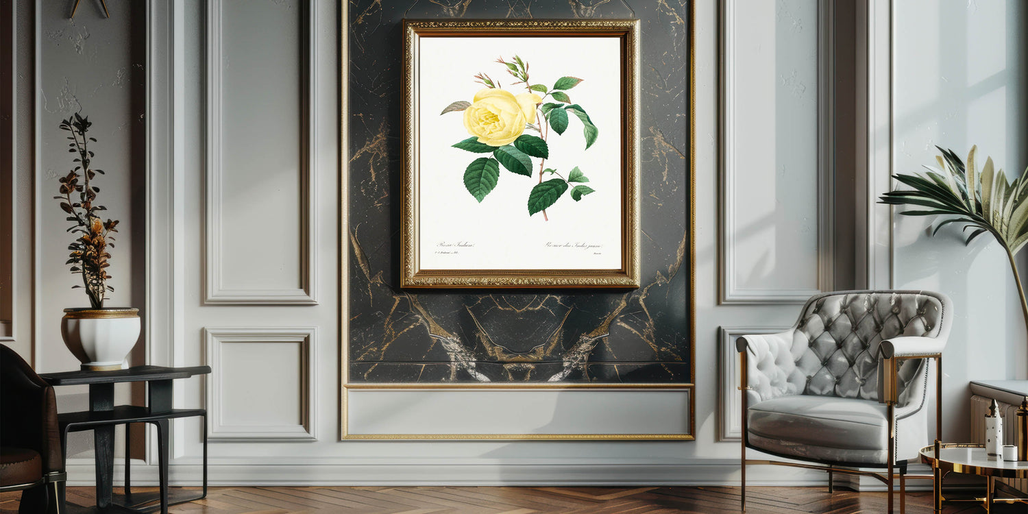 Transform your home with this exquisite Yellow Rose illustration, capturing the spirit of Neoclassicism in a graceful and refined style.