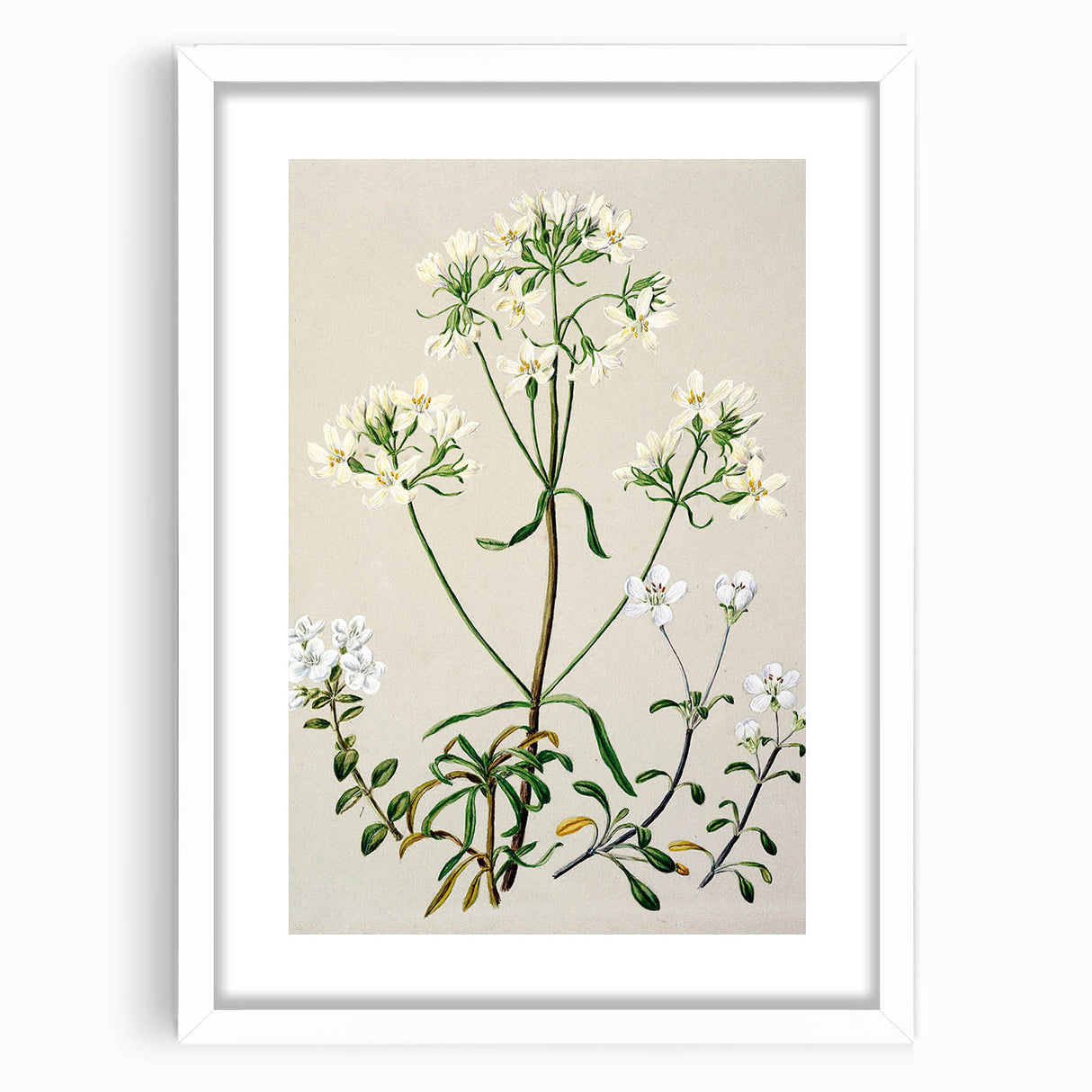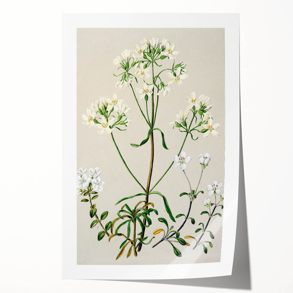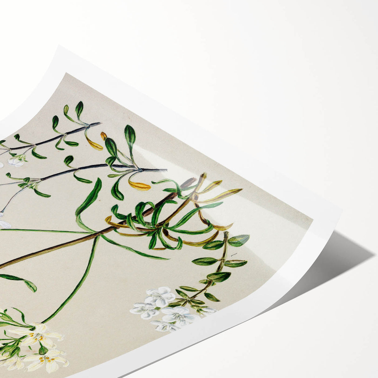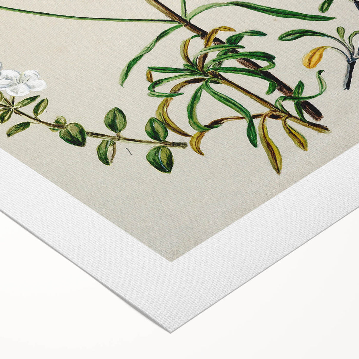 This exquisite realism art print, an antique illustration of the New Zealand Gentian (Gentiana spp.) drawn by Sarah Featon, beautifully captures the elegance of botanical art. The delicate white flowers and lush green leaves are meticulously illustrated, showcasing nature’s subtle details and beauty. This vintage botanical illustration brings a sense of sophistication and tranquility, making it a perfect piece for any space that embraces natural charm and classical decor. Ideal for living rooms, studies, or kitchens, it adds a touch of botanical elegance to both traditional and modern interiors.