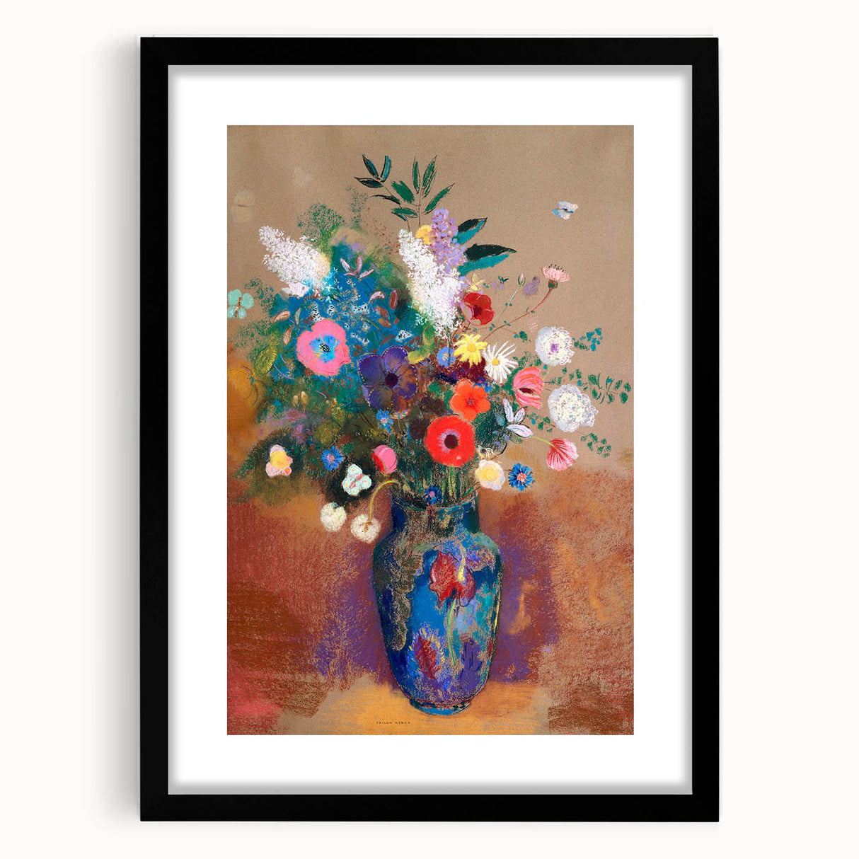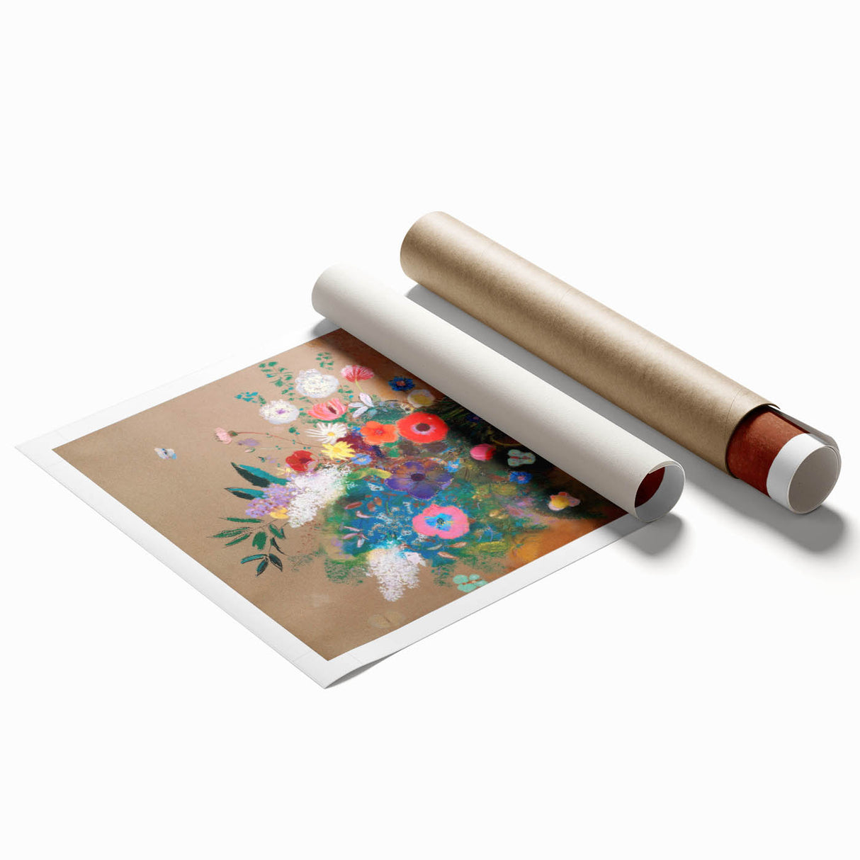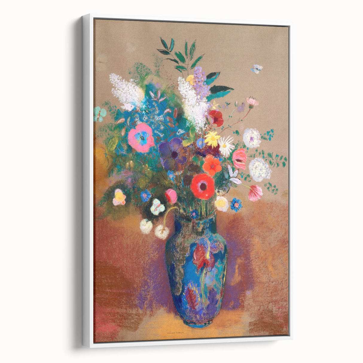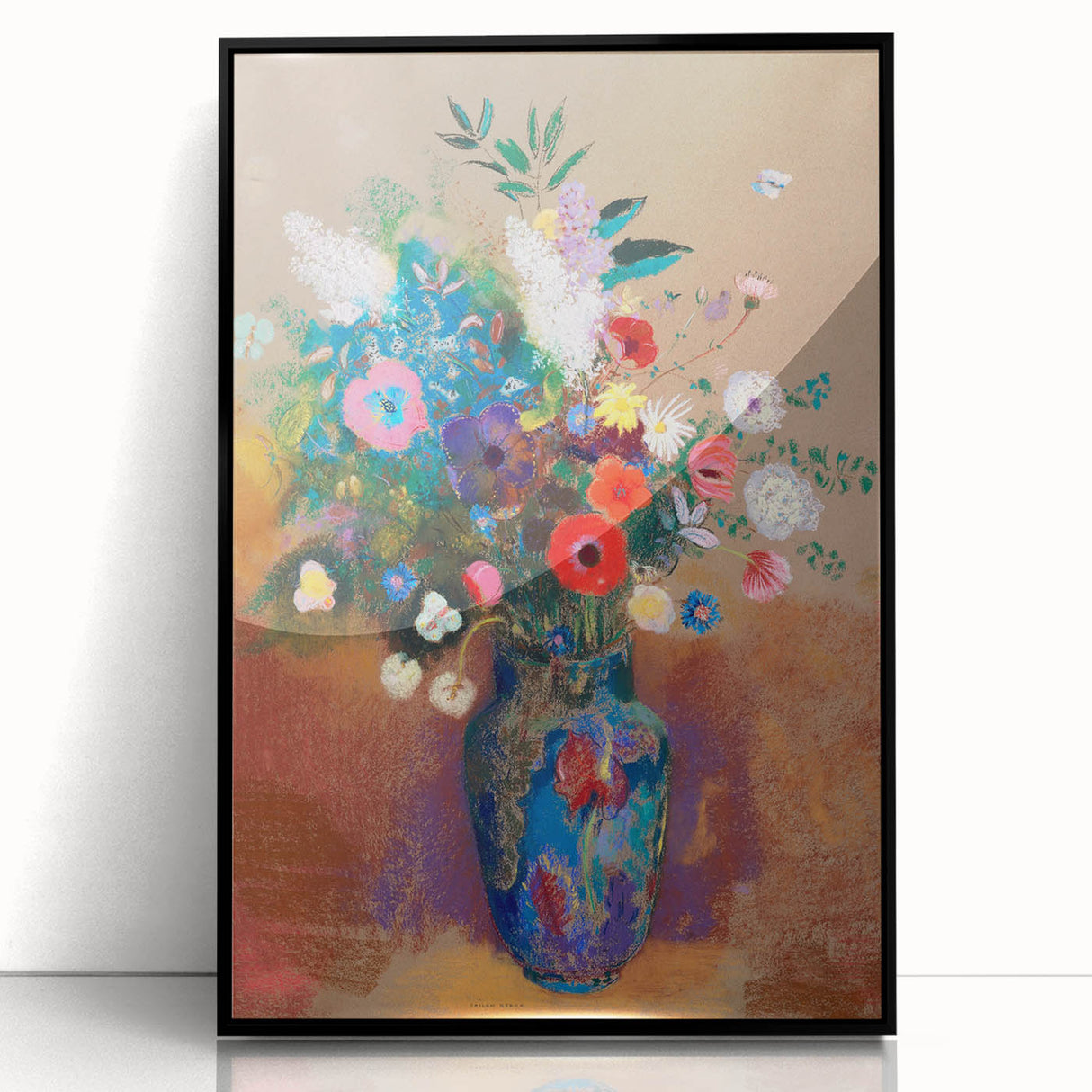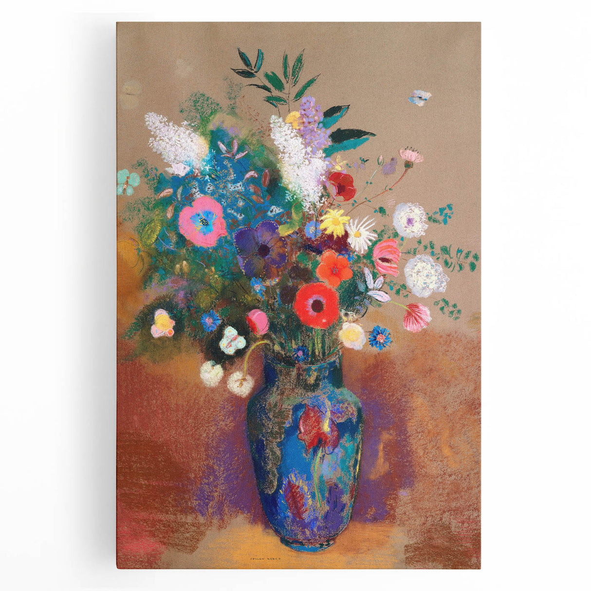 Brighten up your space with this vibrant floral wall art, capturing a stunning bouquet of flowers in an elegant vase. Created in Odilon Redon’s signature style, this artwork features an array of colorful flowers in hues of blue, red, purple, and pink, set against a warm, earthy background. Perfect for trendy home decor, this unique modern art piece brings warmth, elegance, and a touch of nature indoors, making it ideal for anyone who loves the charm of floral designs.