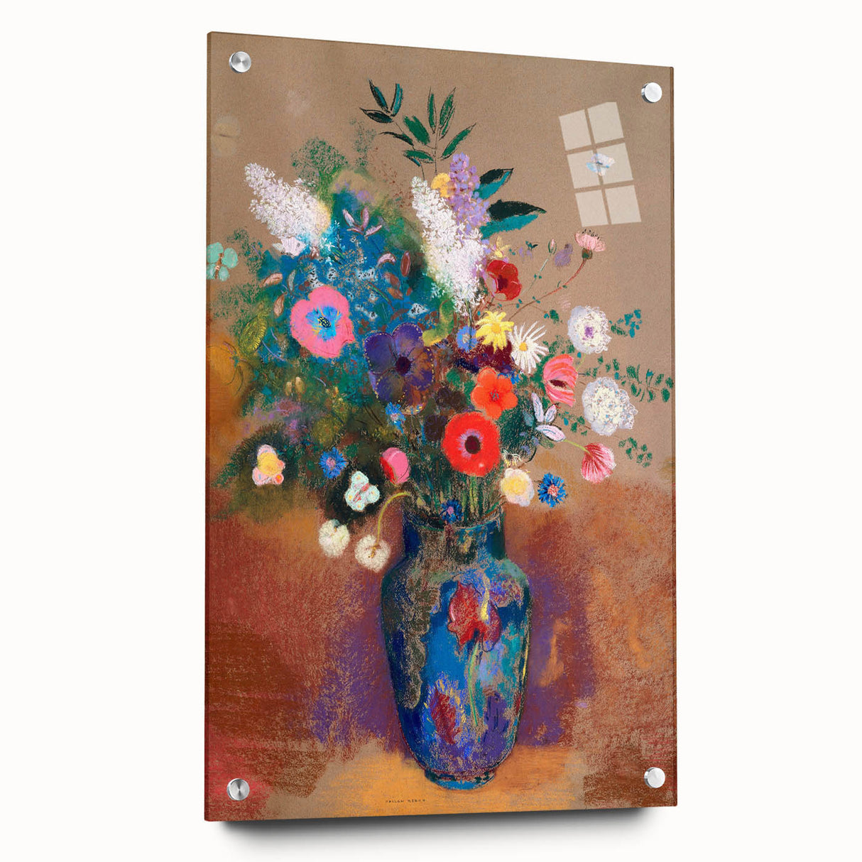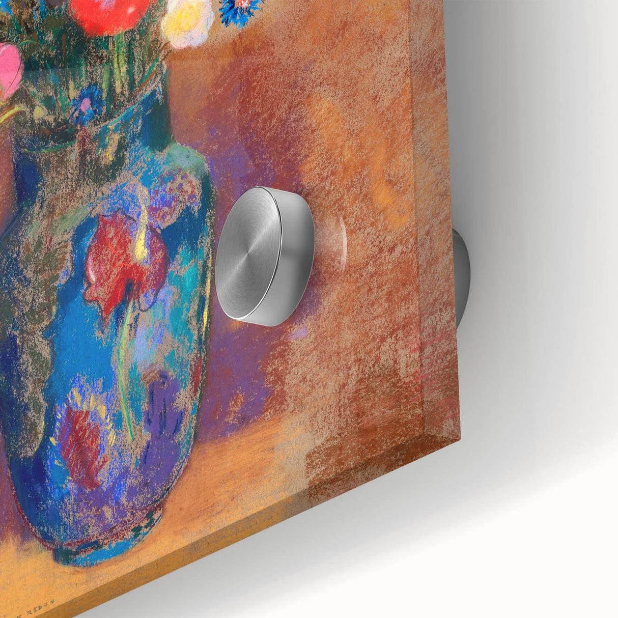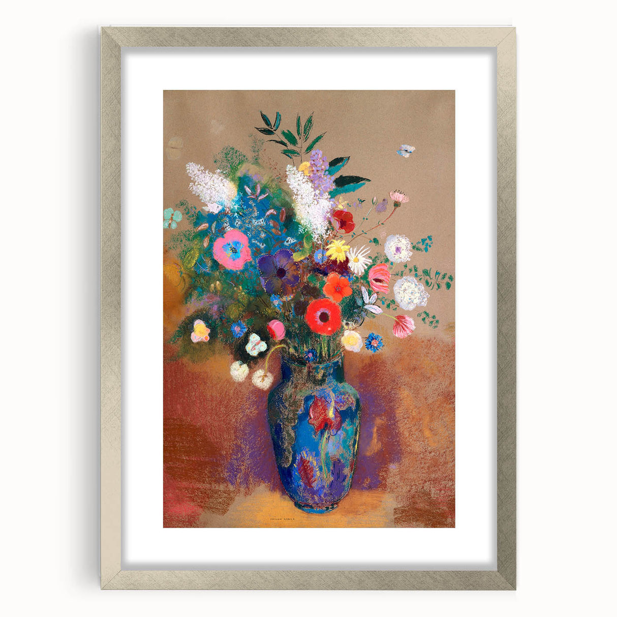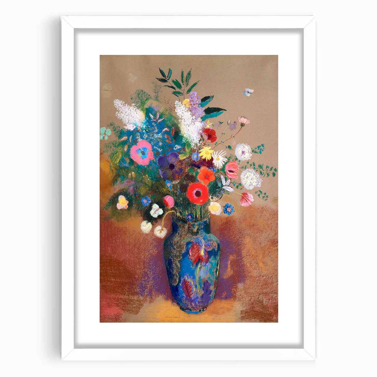 Brighten up your space with this vibrant floral wall art, capturing a stunning bouquet of flowers in an elegant vase. Created in Odilon Redon’s signature style, this artwork features an array of colorful flowers in hues of blue, red, purple, and pink, set against a warm, earthy background. Perfect for trendy home decor, this unique modern art piece brings warmth, elegance, and a touch of nature indoors, making it ideal for anyone who loves the charm of floral designs.