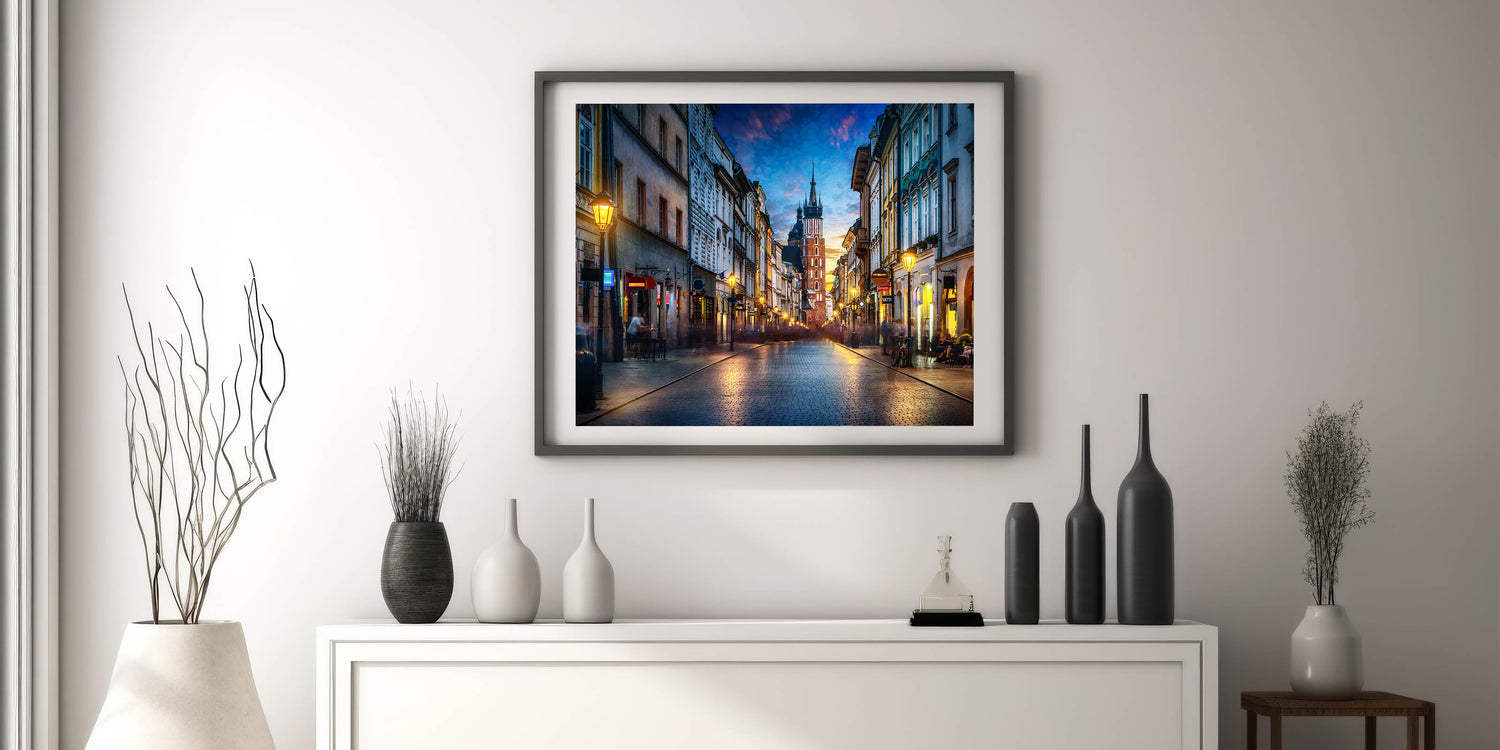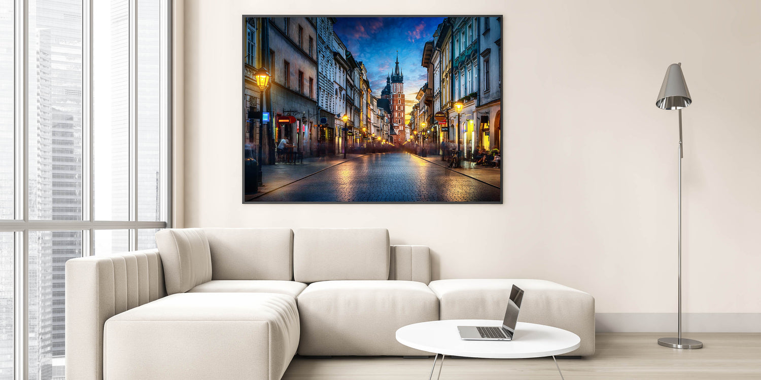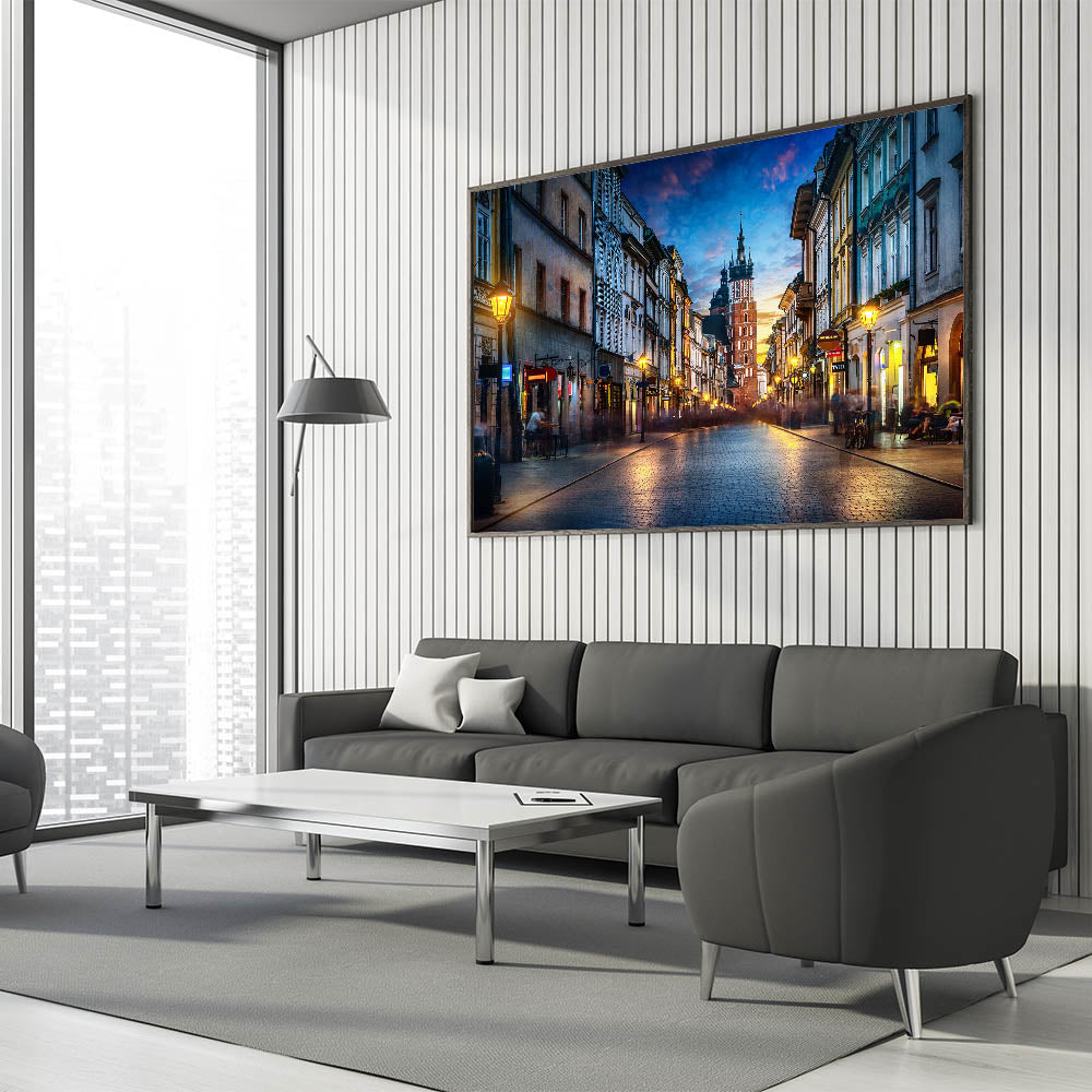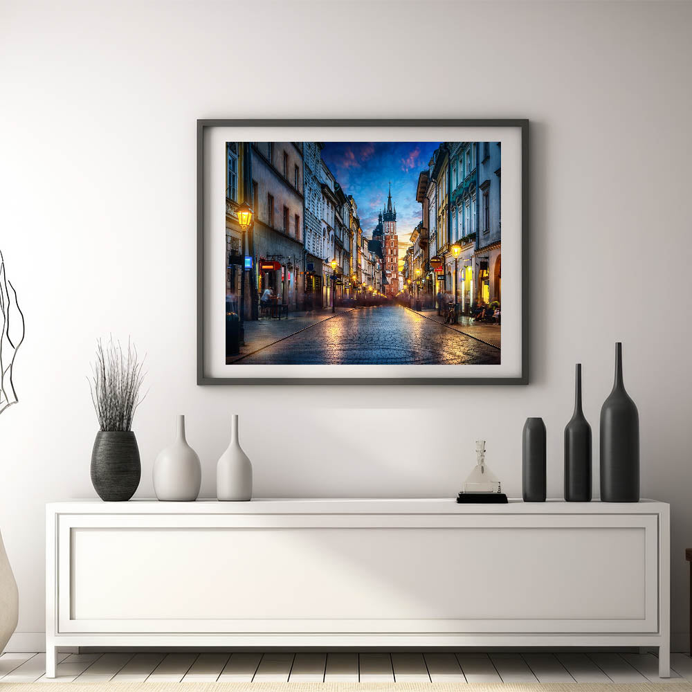 Krakow Wall Art - Evening Street View with St. Mary’s Basilica