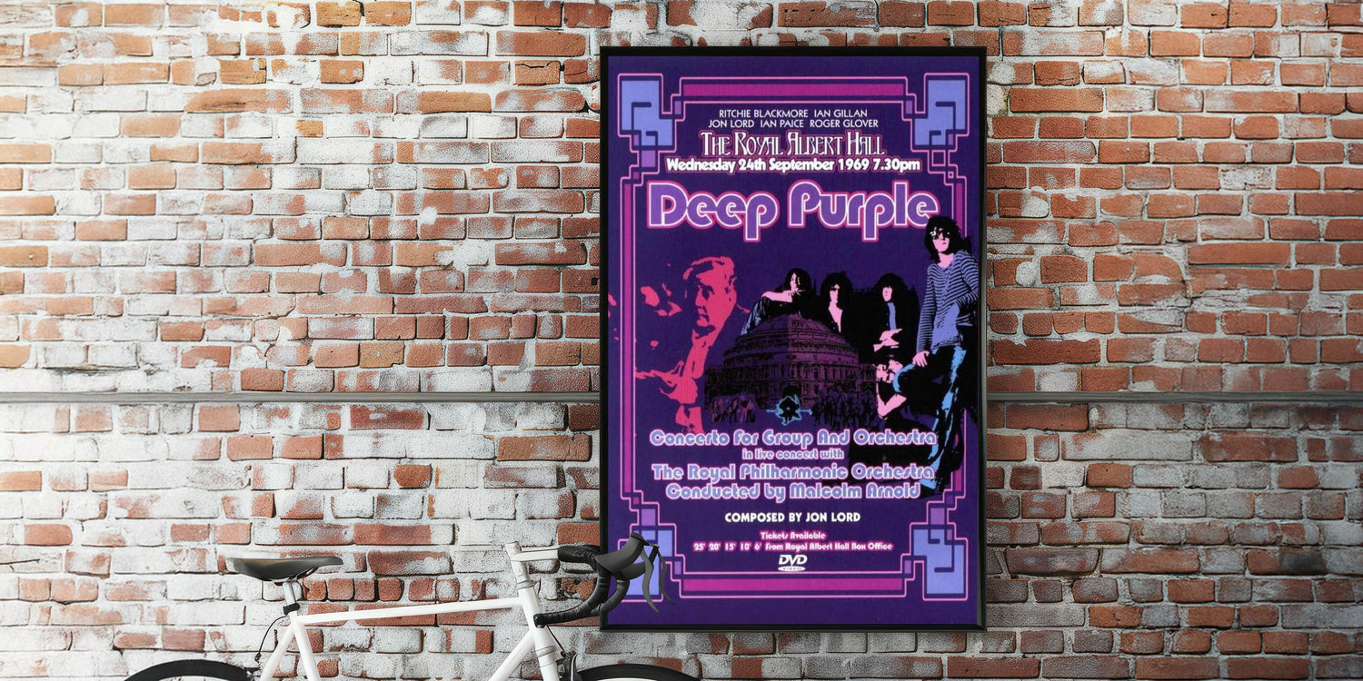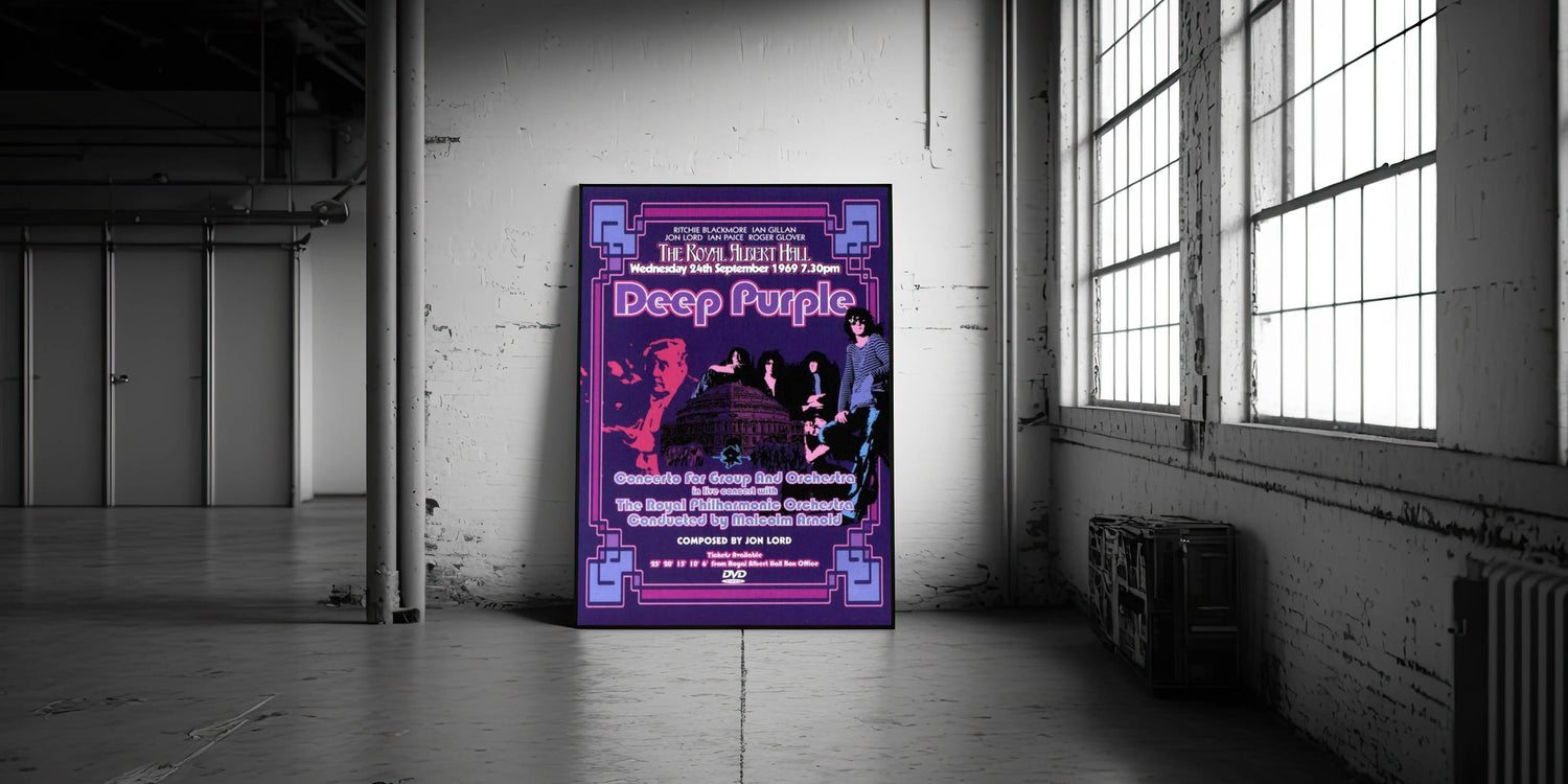 Experience the iconic 1969 performance of Deep Purple with this Retro Poster Art featuring their legendary concert at The Royal Albert Hall. This vintage print showcases a vibrant design with bold purple and pink tones, capturing the energy of the band and the grandeur of the performance. With its combination of the band members and the famous venue, this poster is perfect for fans of nostalgic art prints and classic retro style. A must-have for any music lover, this piece will bring a timeless rock and roll aesthetic to your space.
