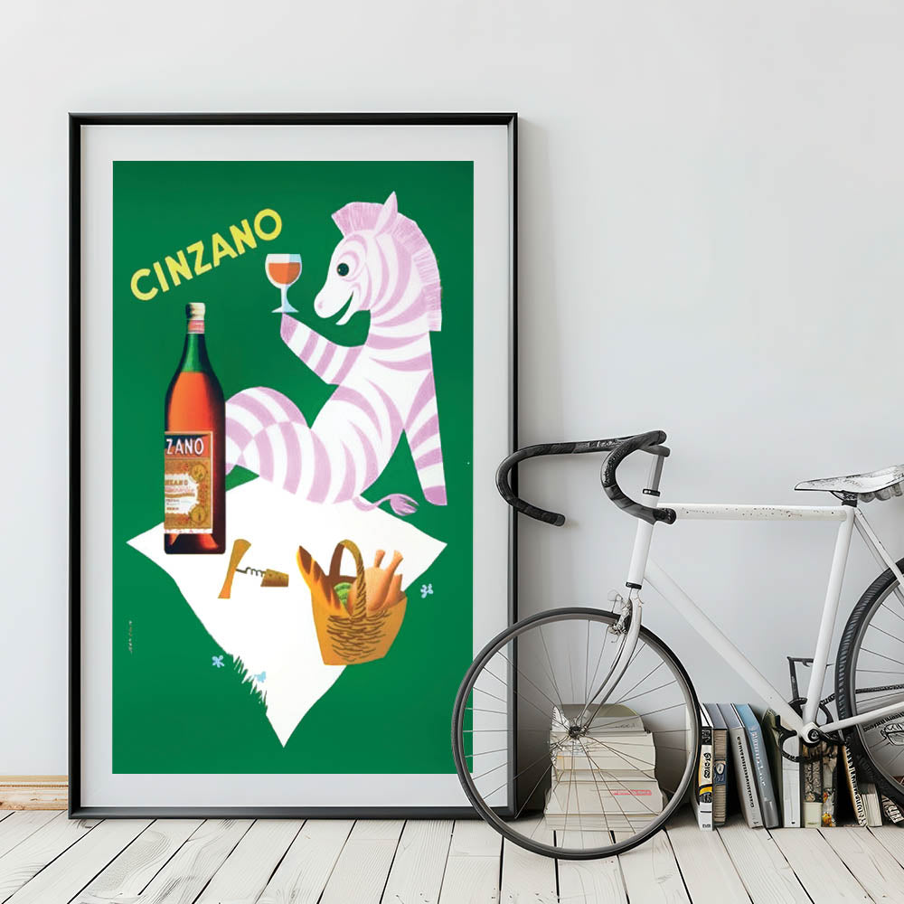 Vintage Cinzano Advertising Poster - Retro Zebra Wall Art