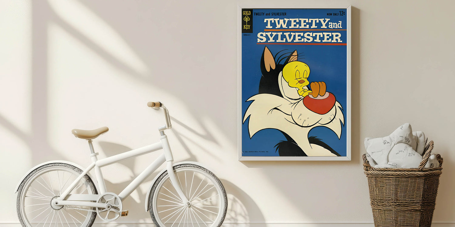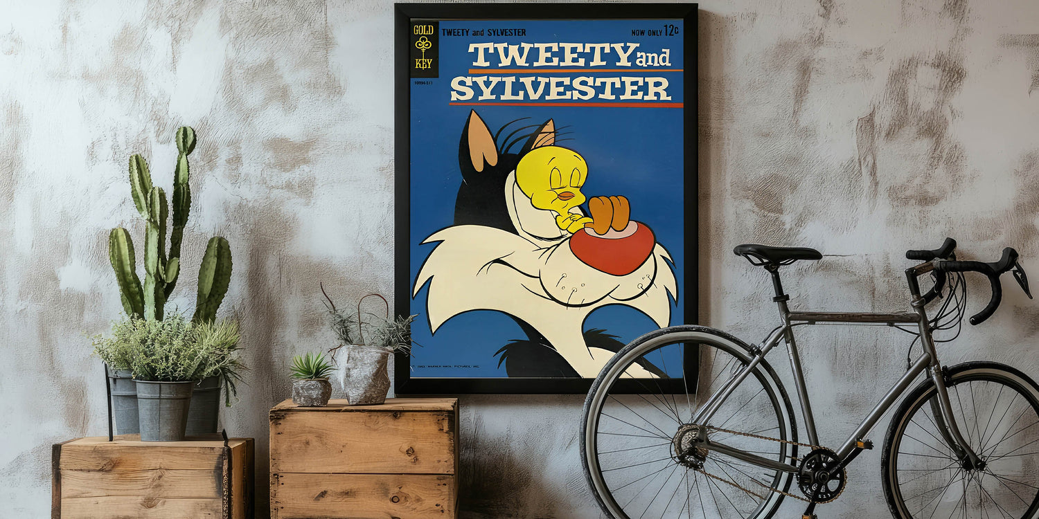 Celebrate classic cartoon rivalry with this Tweety and Sylvester Vintage Comics Wall Art Featuring Sylvester the cat and Tweety Bird in a humorous comic moment, this classic comic book poster is perfect for fans of vintage animation