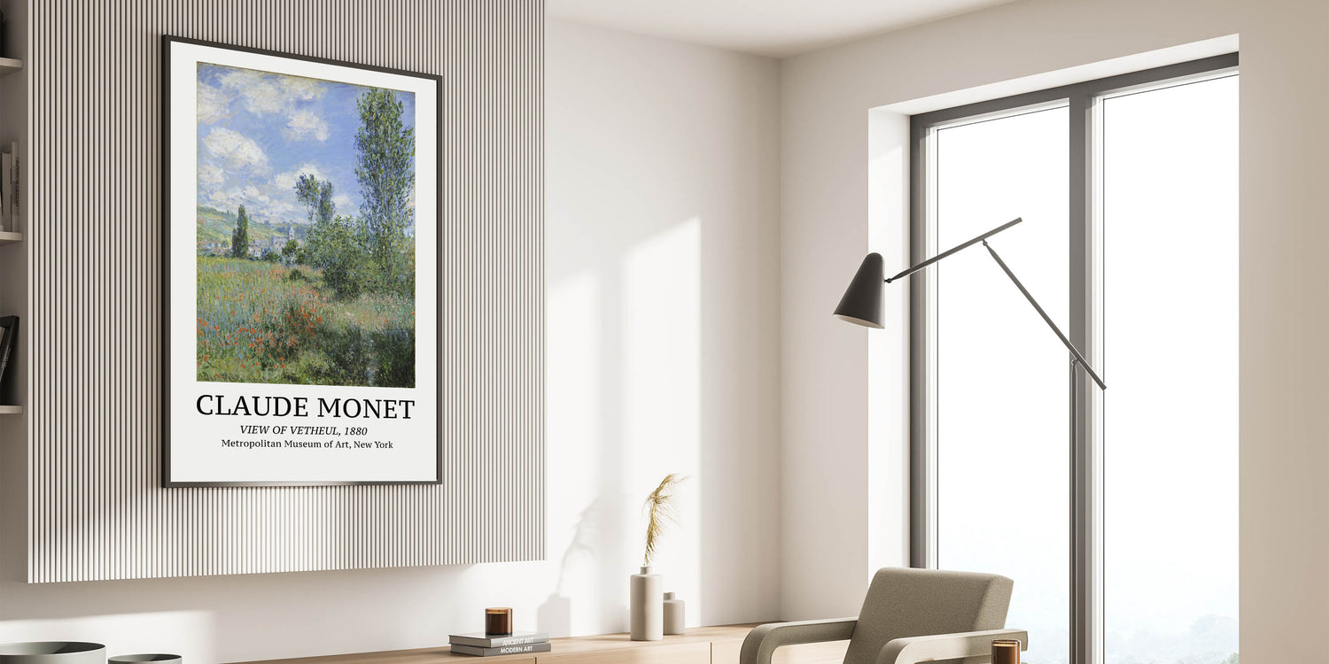 Bring the calm of the countryside into your home with this stunning view of Vétheuil, where Monet’s signature style captures the essence of nature in all its beauty.