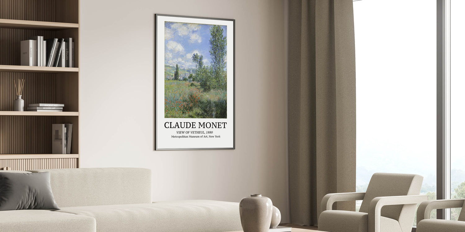 Claude Monet Wall Art – View of Vétheuil, Serene Impressionist Landscape