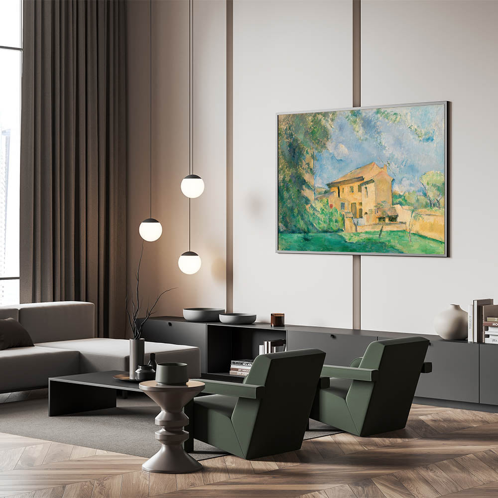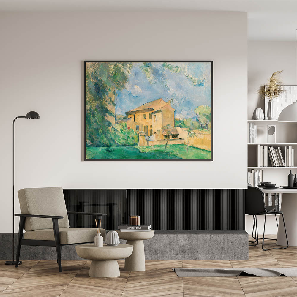 Transform your space with the serene beauty of Paul Cezanne's landscape. Known for his unique approach to natural scenes, Cezanne’s work blends rich colors with delicate brushstrokes, creating a peaceful yet dynamic composition. This reproduction features a charming house surrounded by lush greenery, painted with Cezanne's unmistakable Post-Impressionist style. The vibrant hues of green and yellow give life to this peaceful countryside, making it a perfect addition to any room.