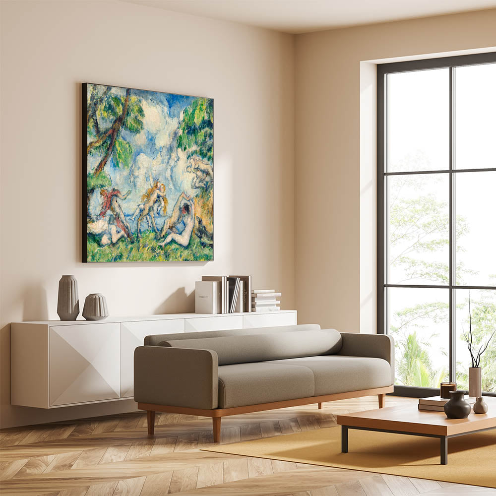 This Cezanne painting reproduction offers an exquisite portrayal of the human form set within nature, making it a captivating focal point for any room.
