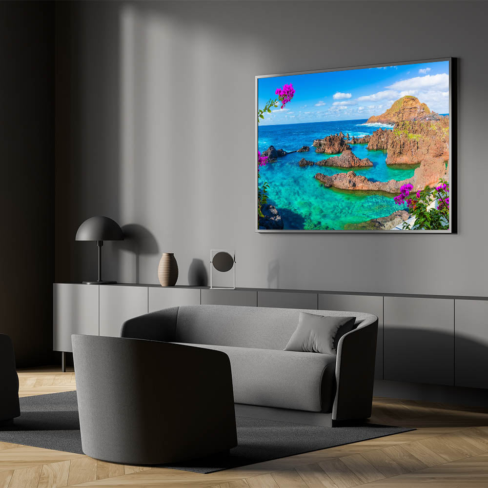 This high-quality Porto canvas print captures the essence of Porto’s dramatic coastline, with its rugged rock formations and crystal waters, creating a serene and refreshing atmosphere in any room.