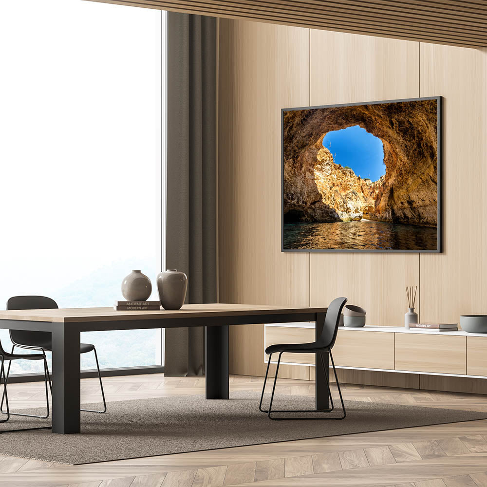 Enhance your decor with a reminder of Portugal’s sun-drenched coastlines. Whether for a living room, office, or bedroom, this piece will transport you to the peaceful beaches and hidden caves of the Algarve. Available in several formats, this artwork makes for a perfect gift for lovers of nature, photography, and travel.