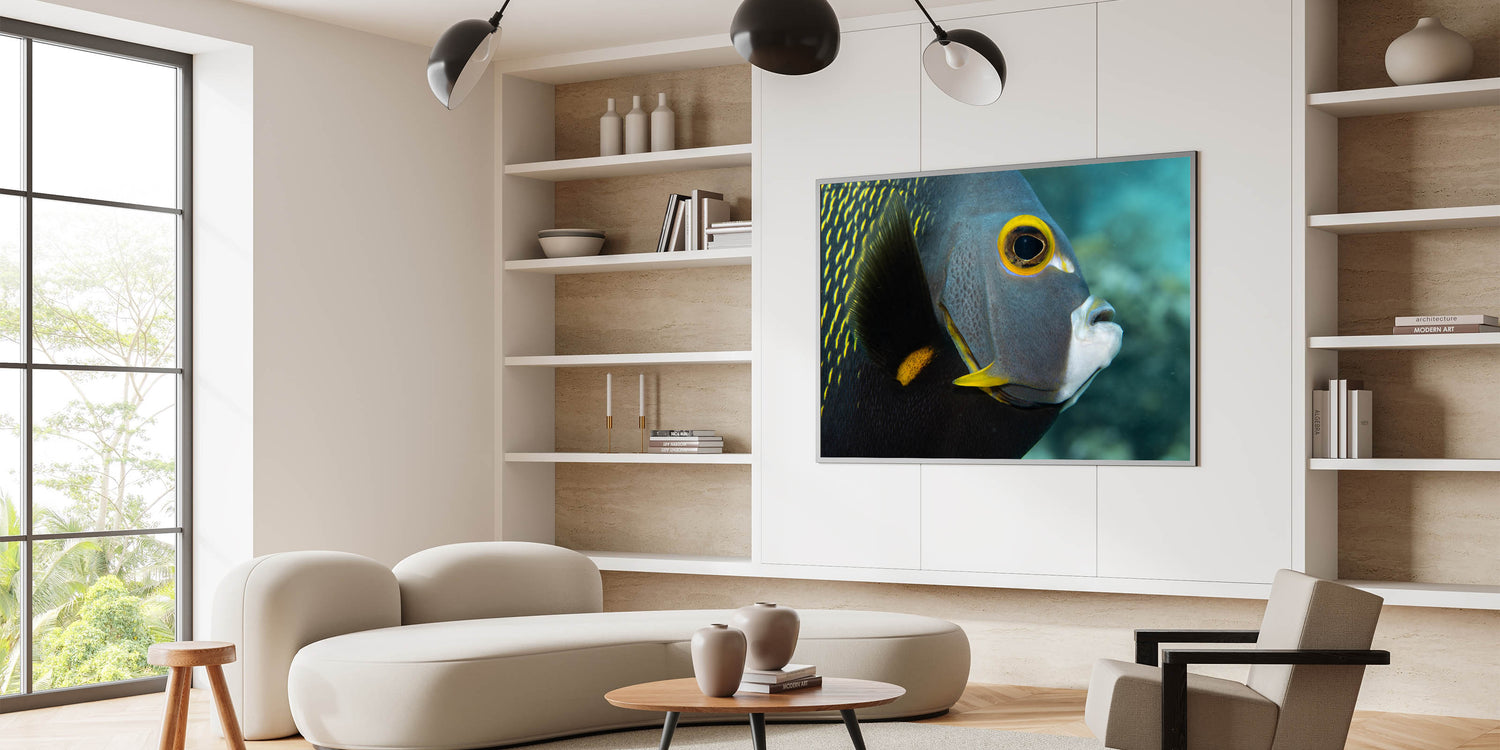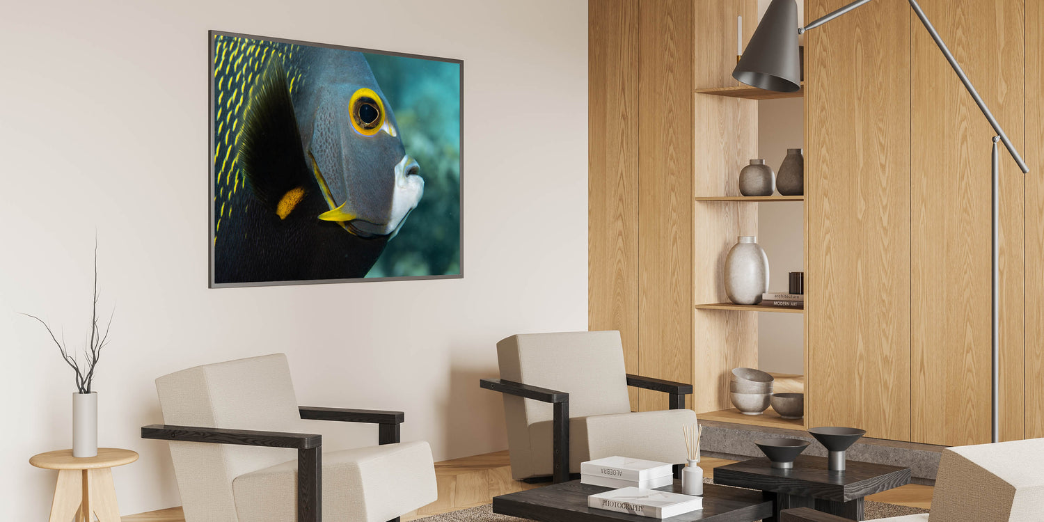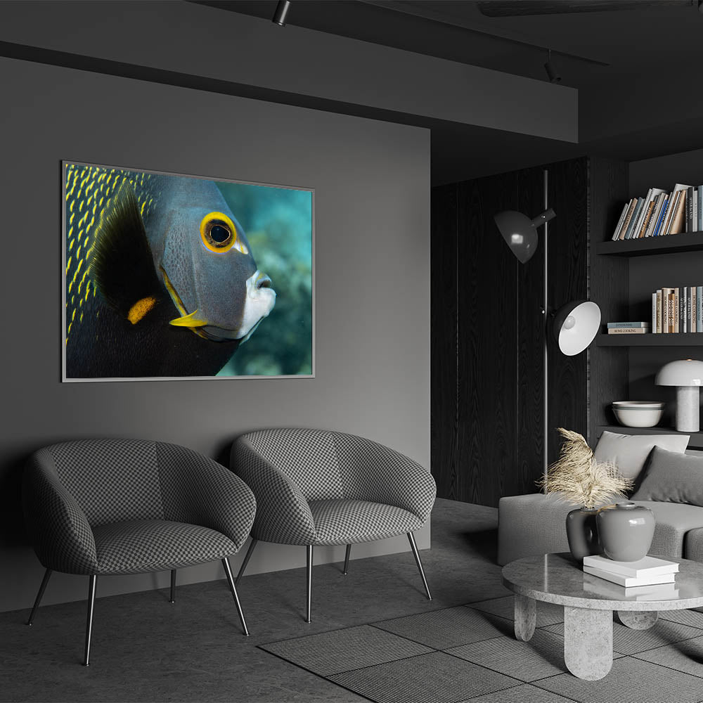 Dive into the vibrant world of Puerto Rican marine life with this stunning close-up of a tropical fish. This captivating Caribbean canvas print showcases the intricate details and vibrant colors of Puerto Rico’s underwater wildlife. The fish’s bold yellow markings stand out against its dark, textured body, creating a striking contrast that adds depth and intrigue to the piece. Perfect for lovers of aquatic and marine-inspired decor, this artwork brings the beauty of Puerto Rico's coastal life into any space.