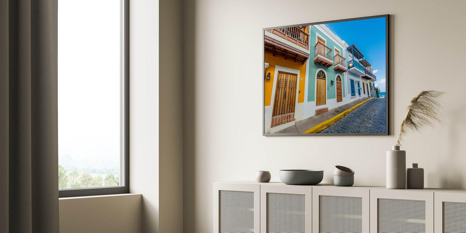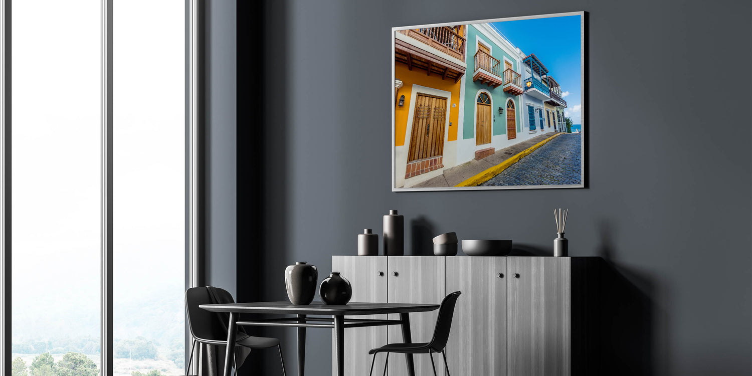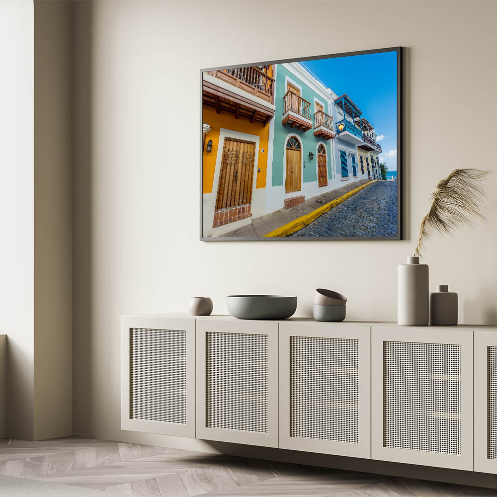 Transform your space with this iconic Puerto Rico photography, perfect for adding a touch of tropical paradise wall decor. Whether you're looking to decorate your living room, office, or hallway, this piece will remind you of the enchanting streets of San Juan every time you look at it.